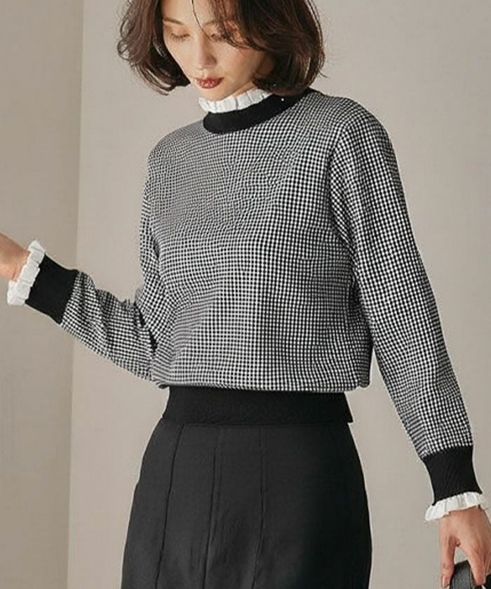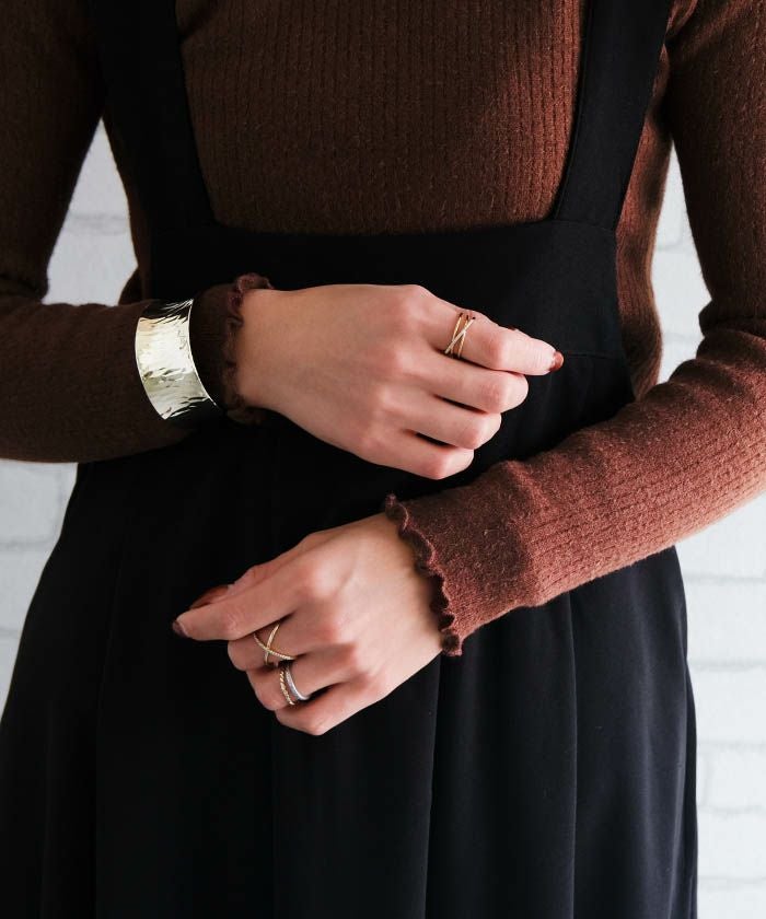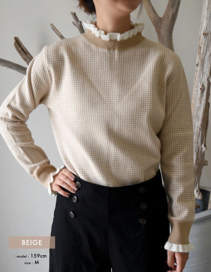 送料無料 ネック袖口フリルニットトップス 春 秋 冬 M L レディース ≪ゆうメール便配送30・代引不可≫ | | アクアガレージ aquagarage