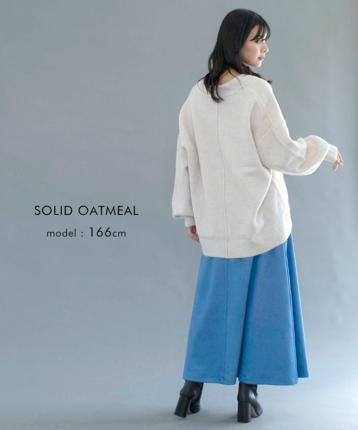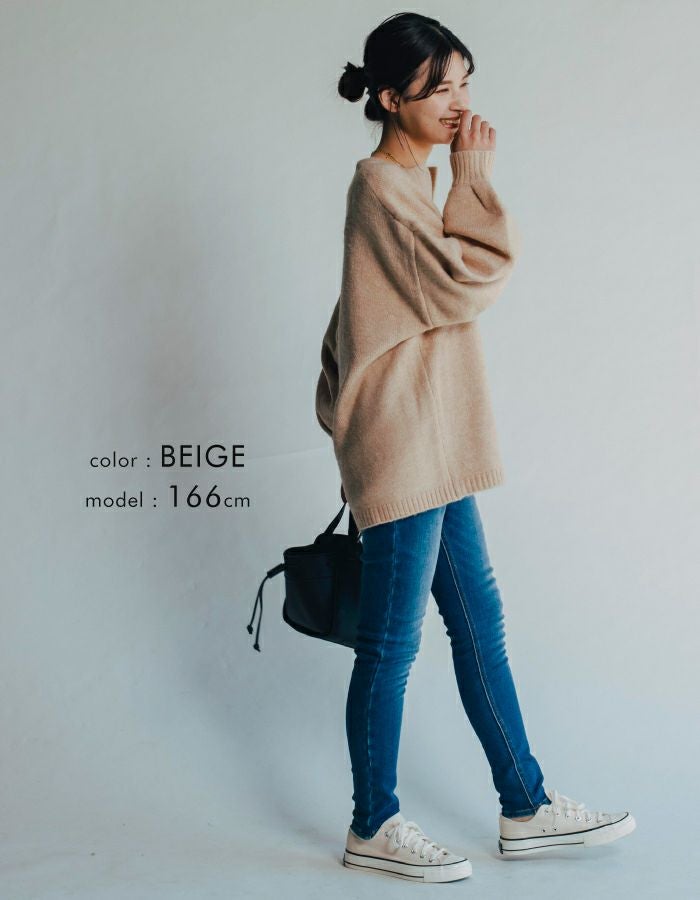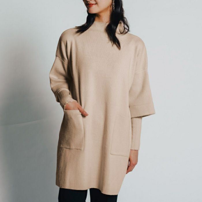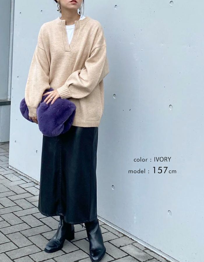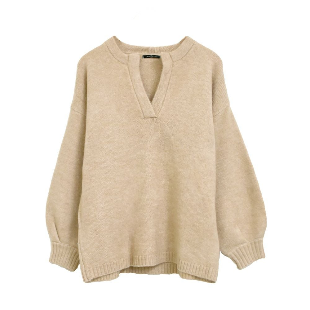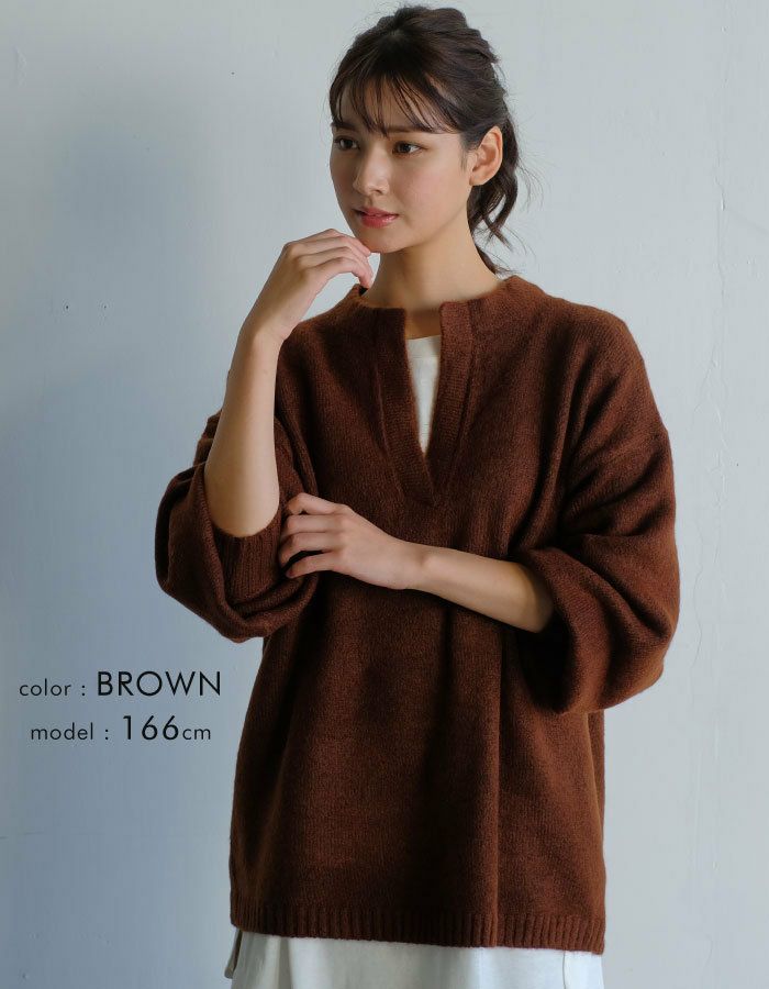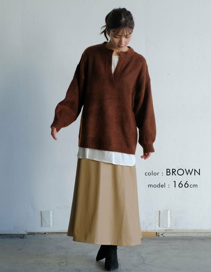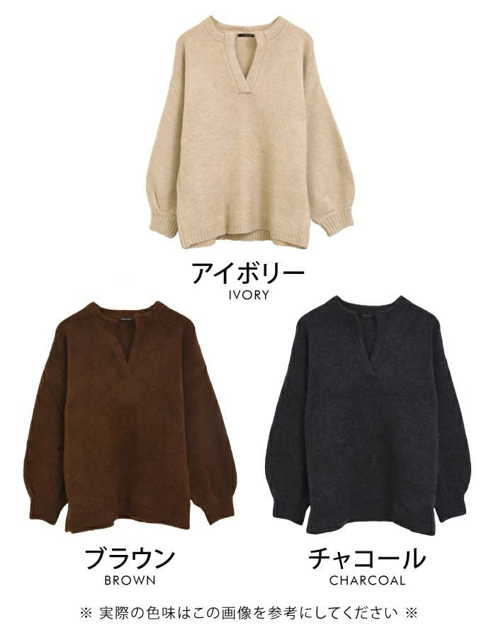 送料無料 ゆるシルエットキーネックニット レディース 秋 冬 長袖 チュニック | アクアガレージ aquagarage