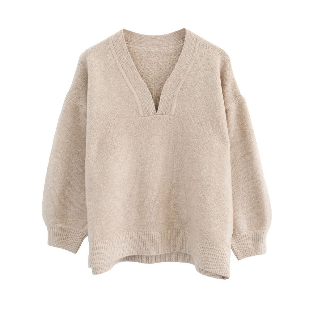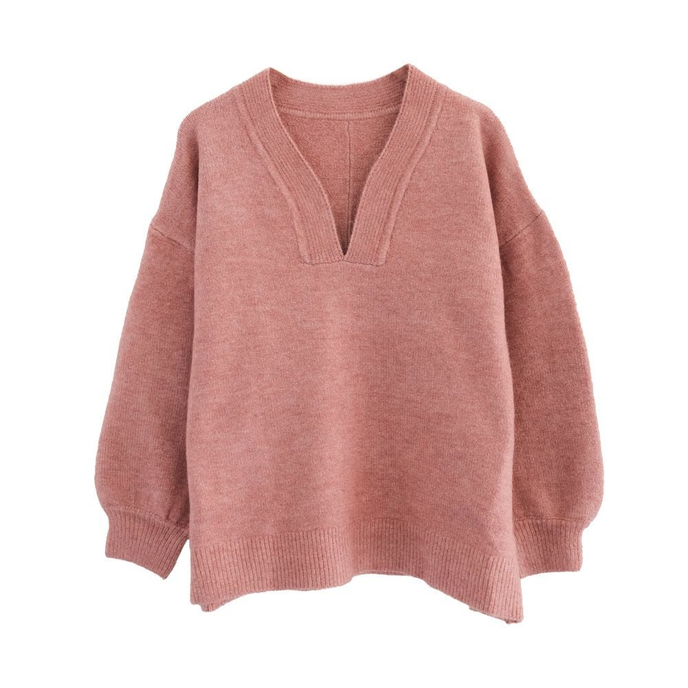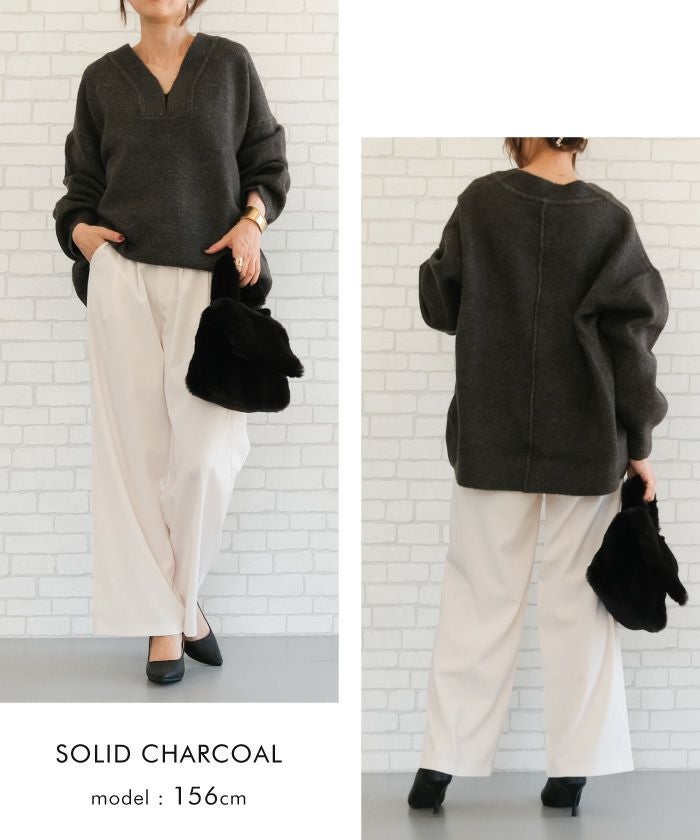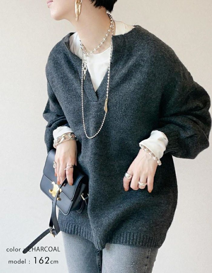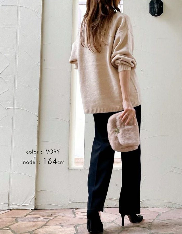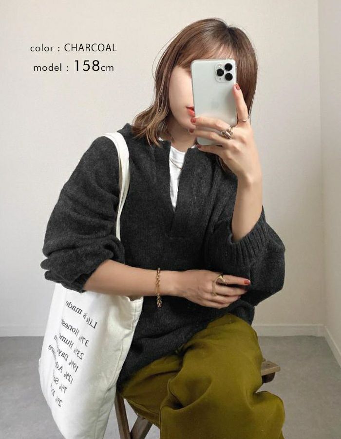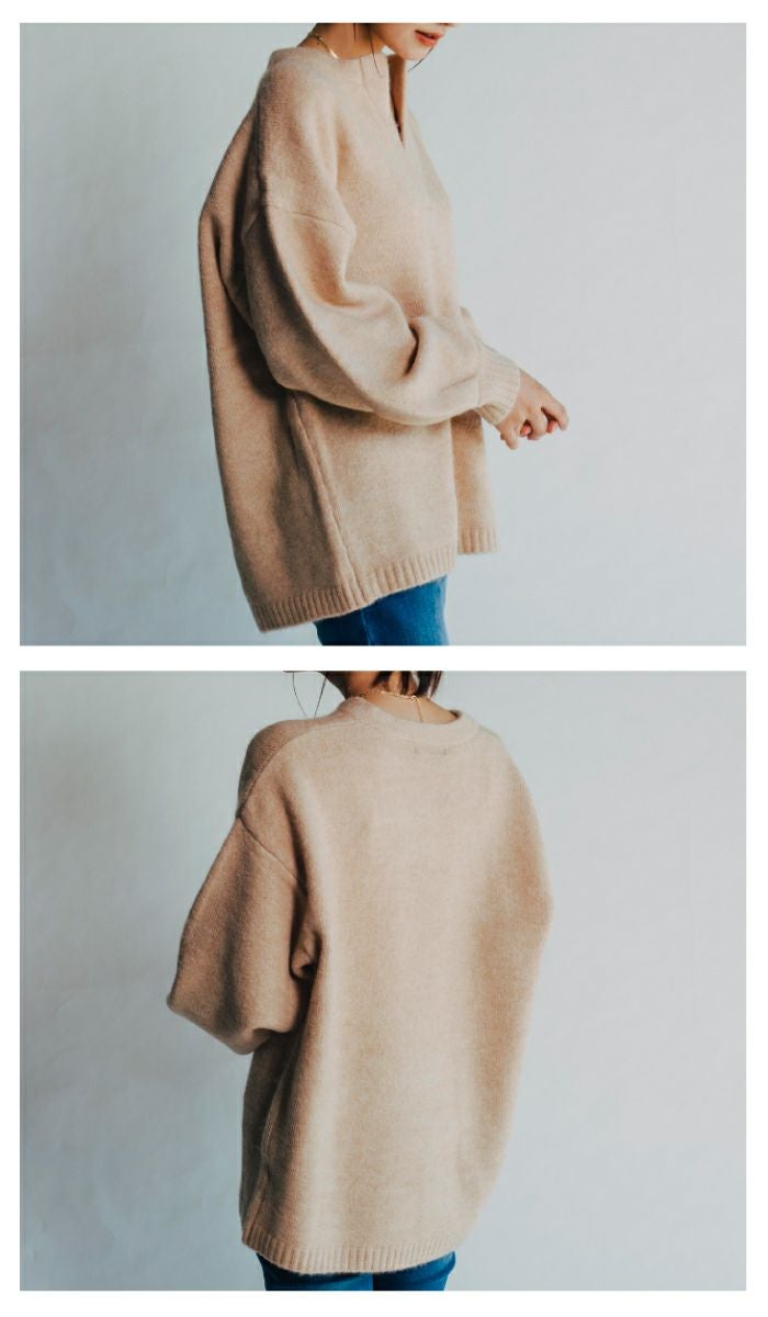 送料無料 ゆるシルエットキーネックニット レディース 秋 冬 長袖 チュニック | アクアガレージ aquagarage