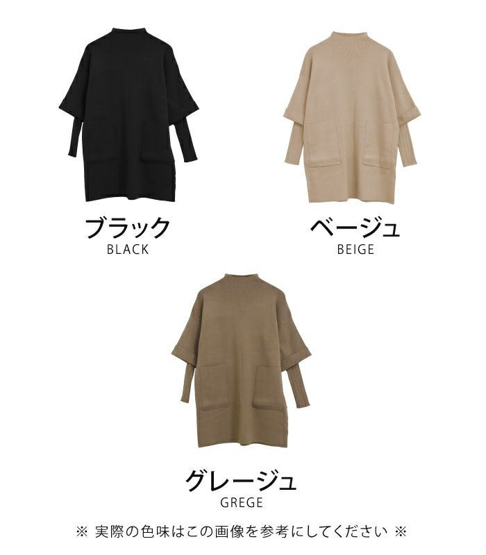 送料無料 レイヤード風ニットチュニック レディース 秋 冬 M L 長袖 | アクアガレージ aquagarage