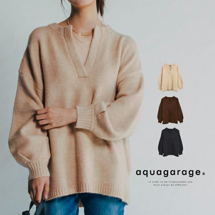 送料無料 深Vネックニットトップス レディース | アクアガレージ aquagarage