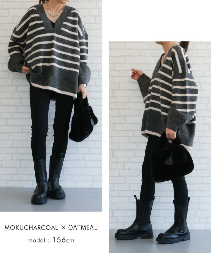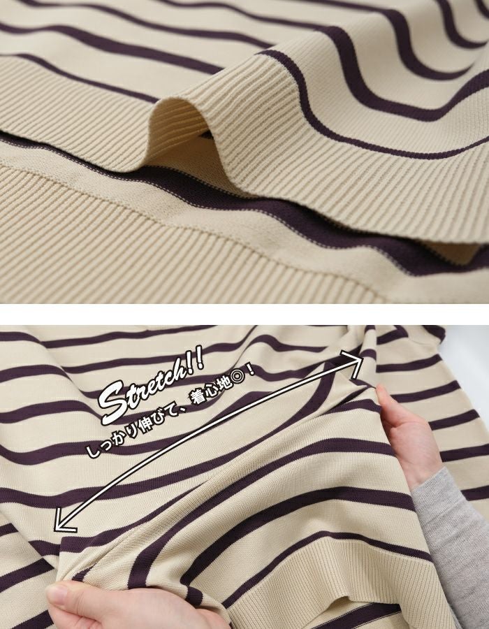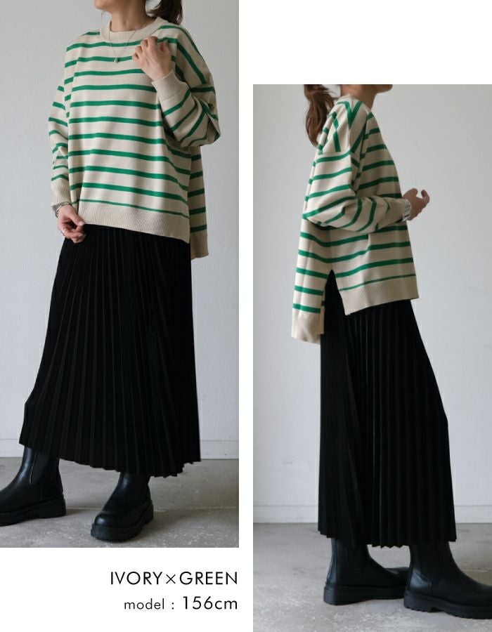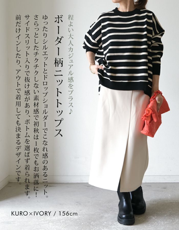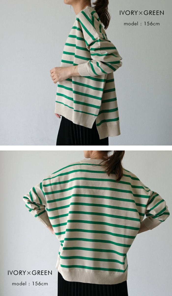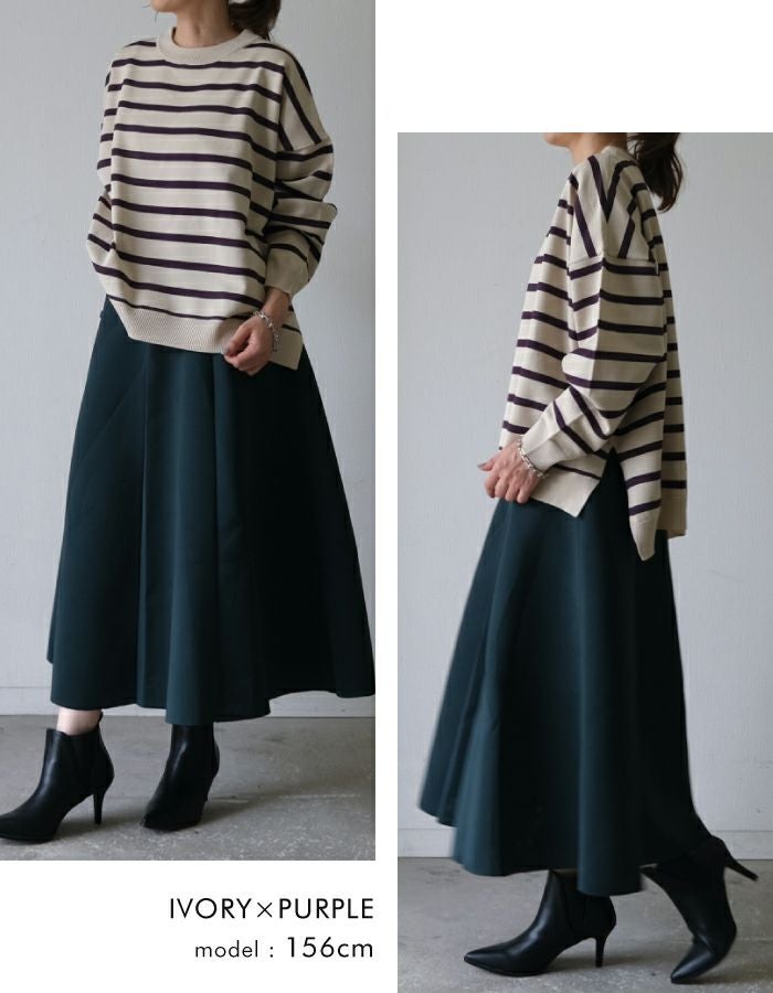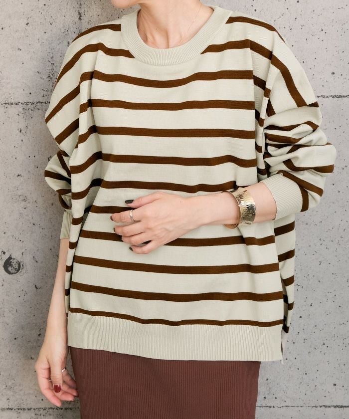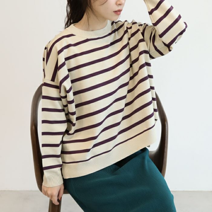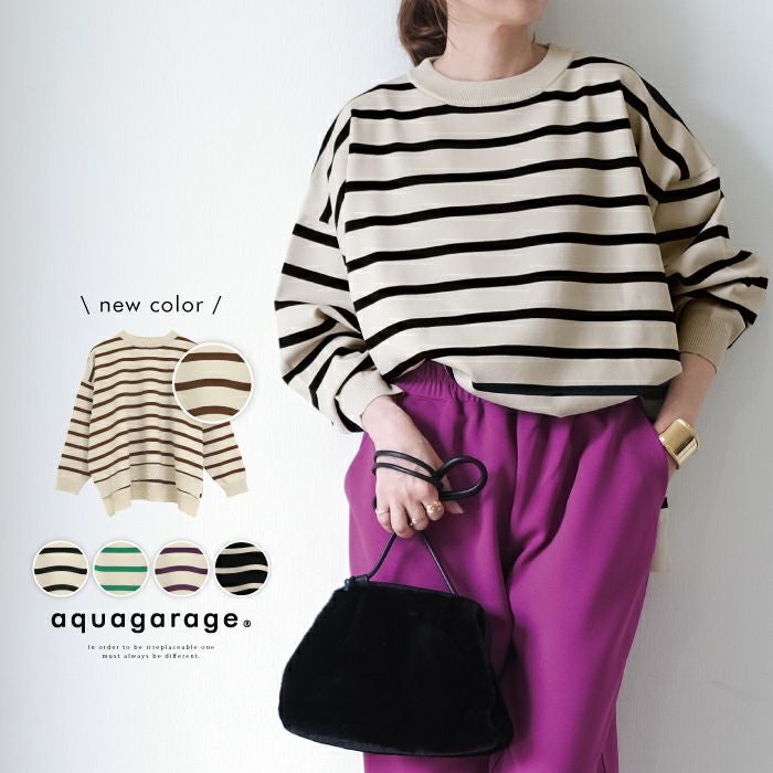ボーダー柄ニットトップス レディース 春 秋 冬 長袖 | アクアガレージ aquagarage