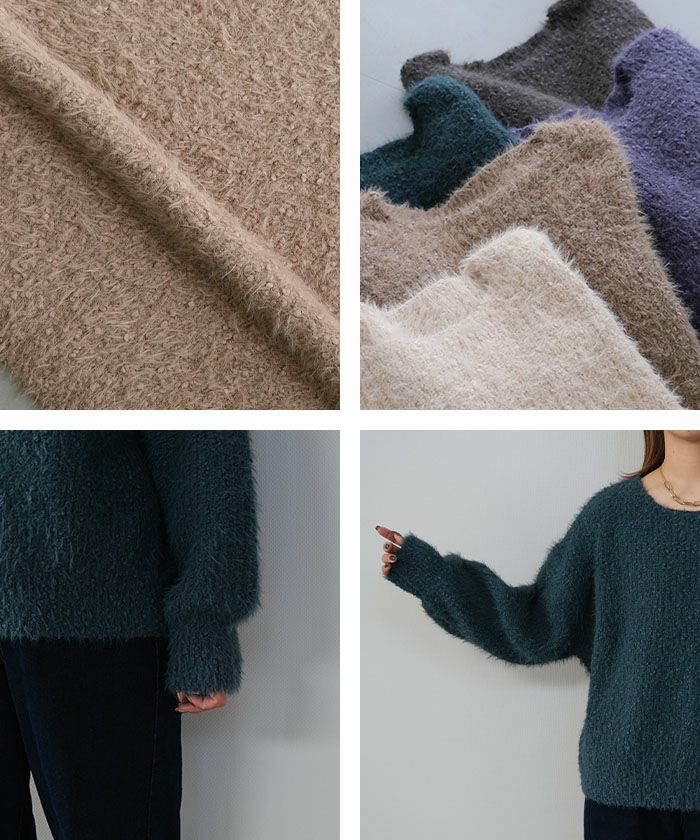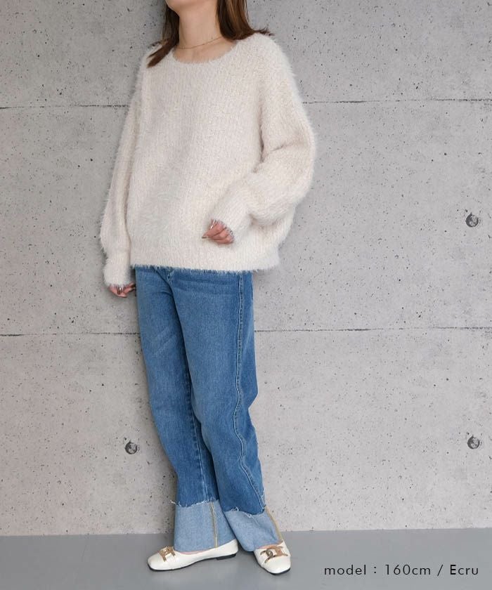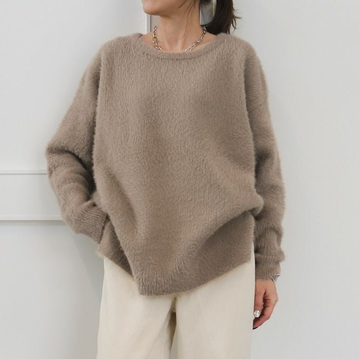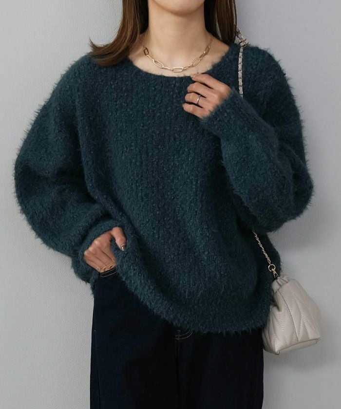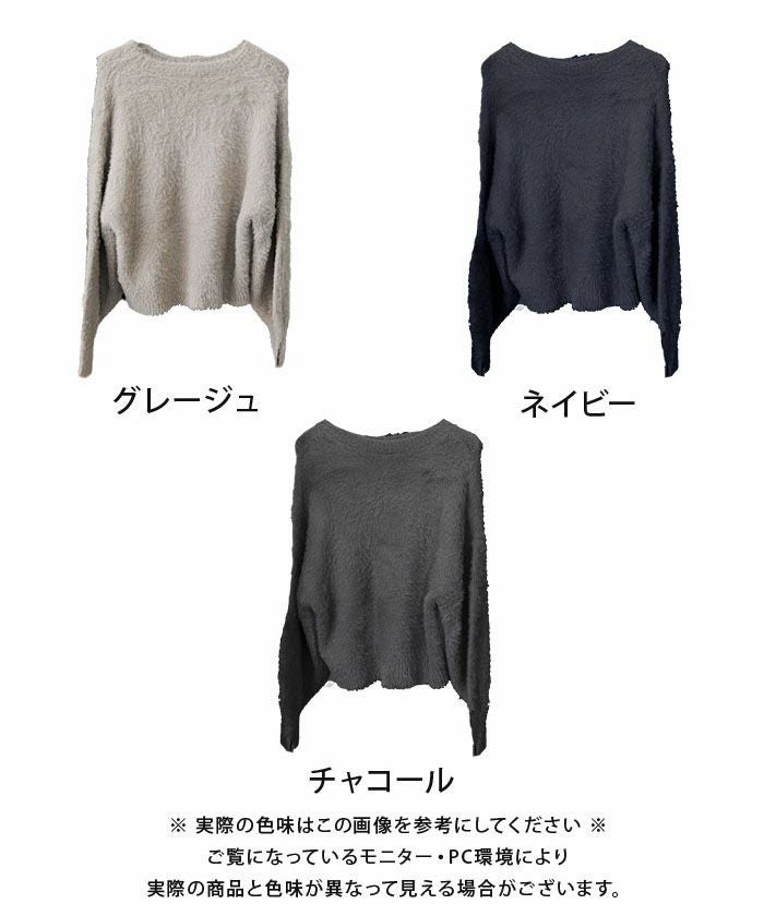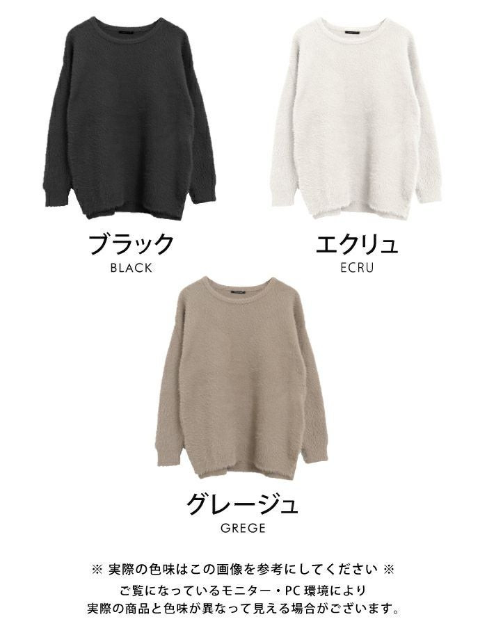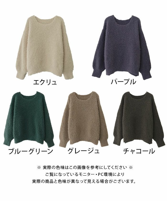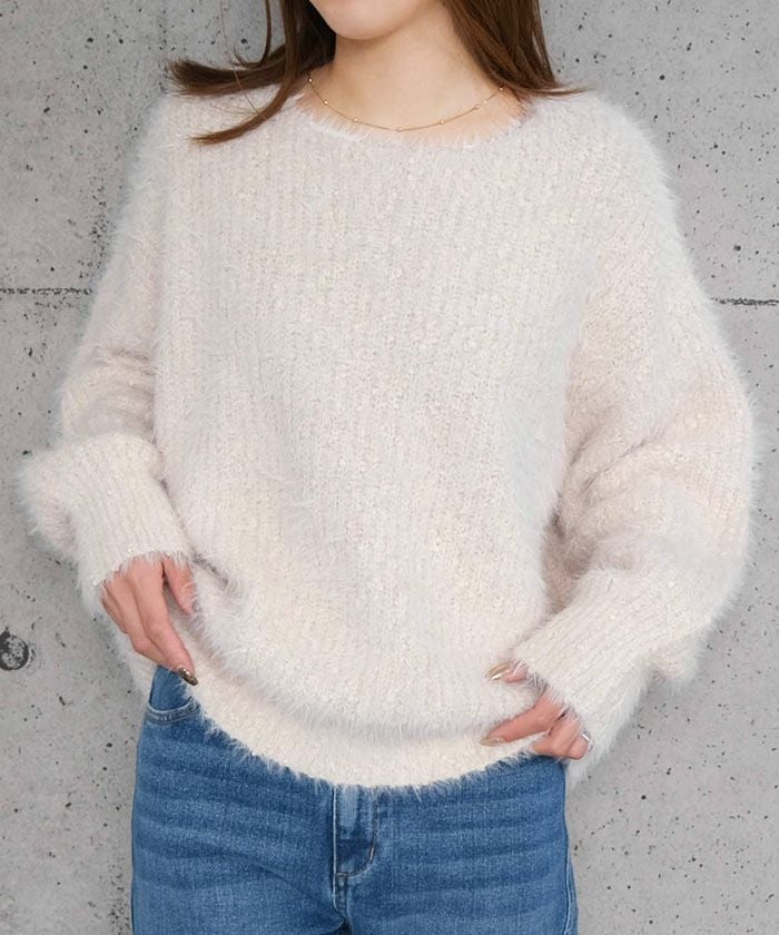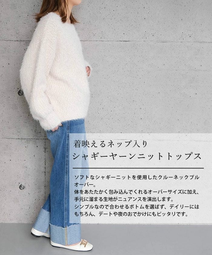 送料無料 シャギーニットラウンドネックトップス レディース 春 秋 冬 | アクアガレージ aquagarage