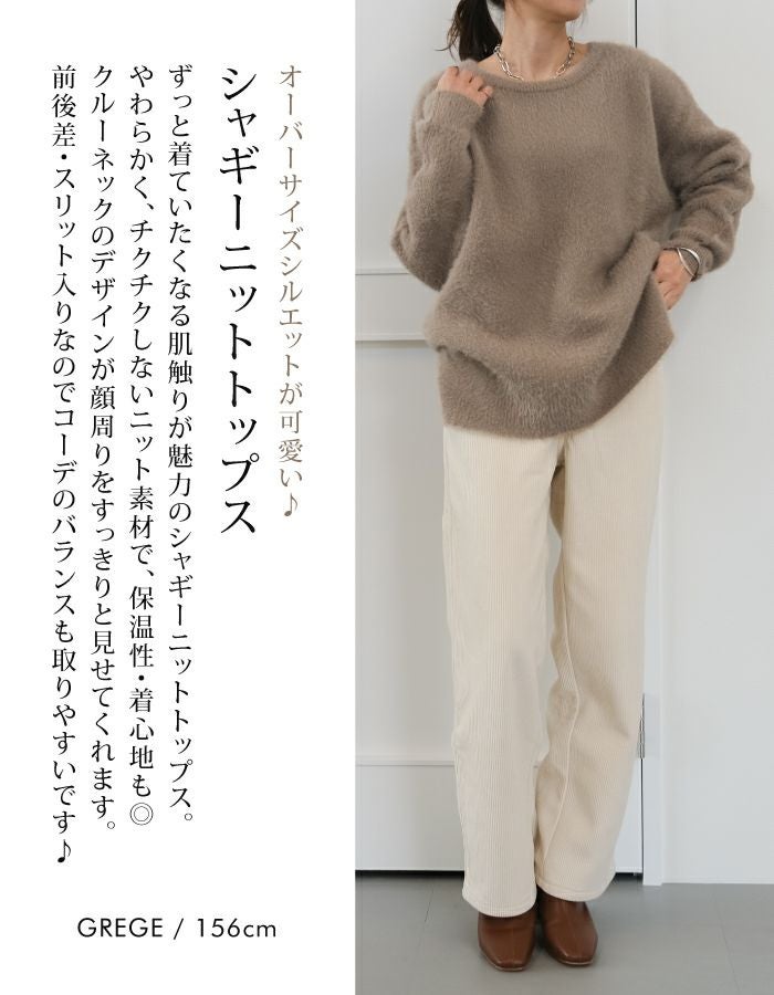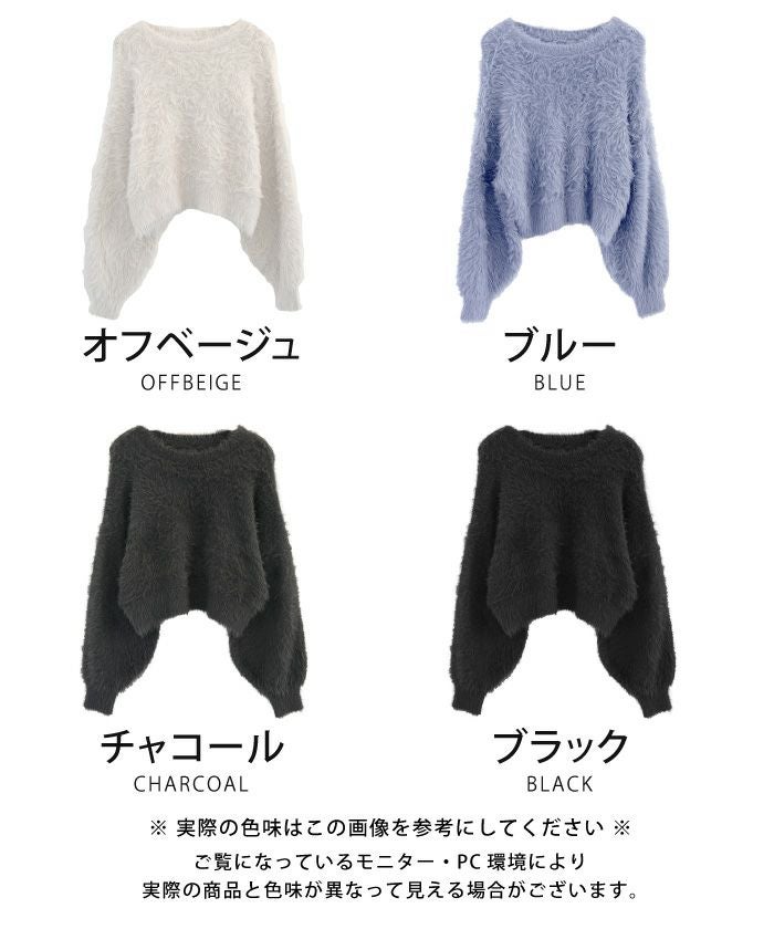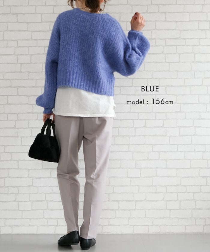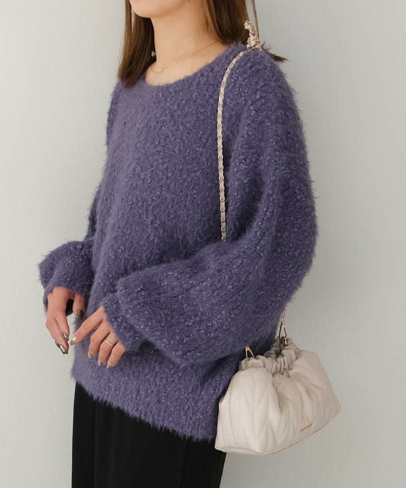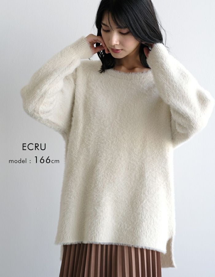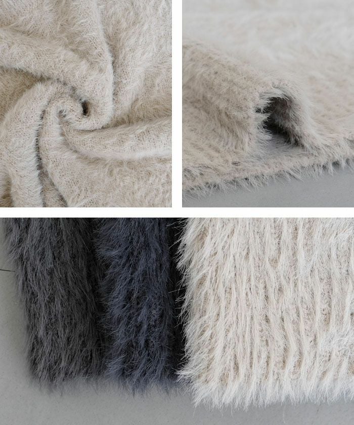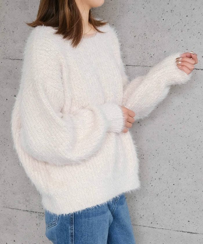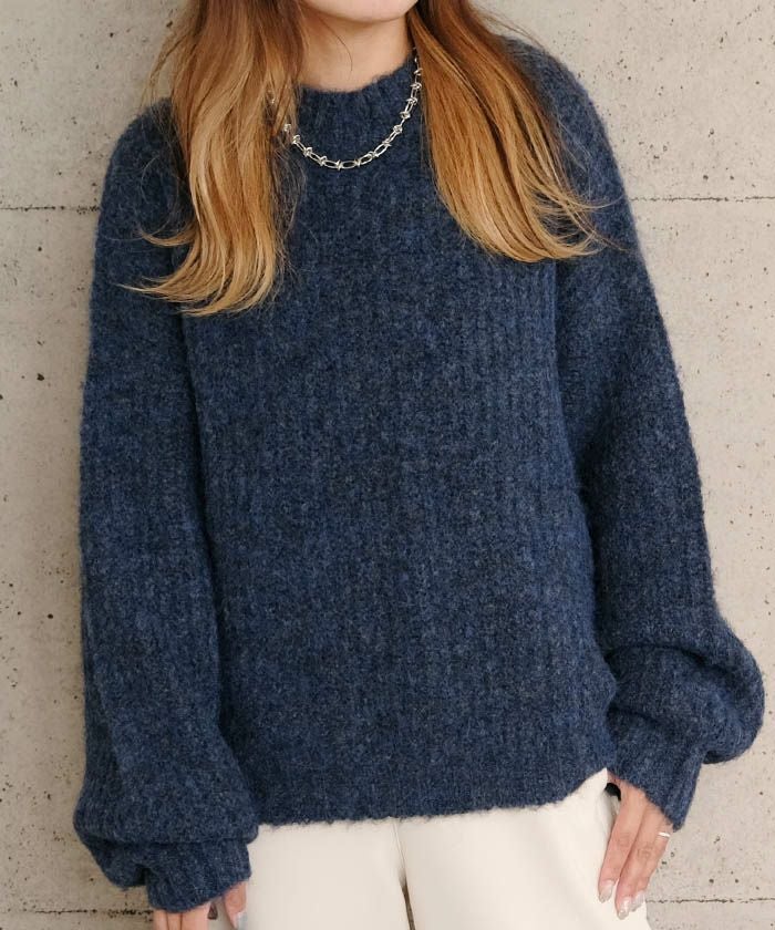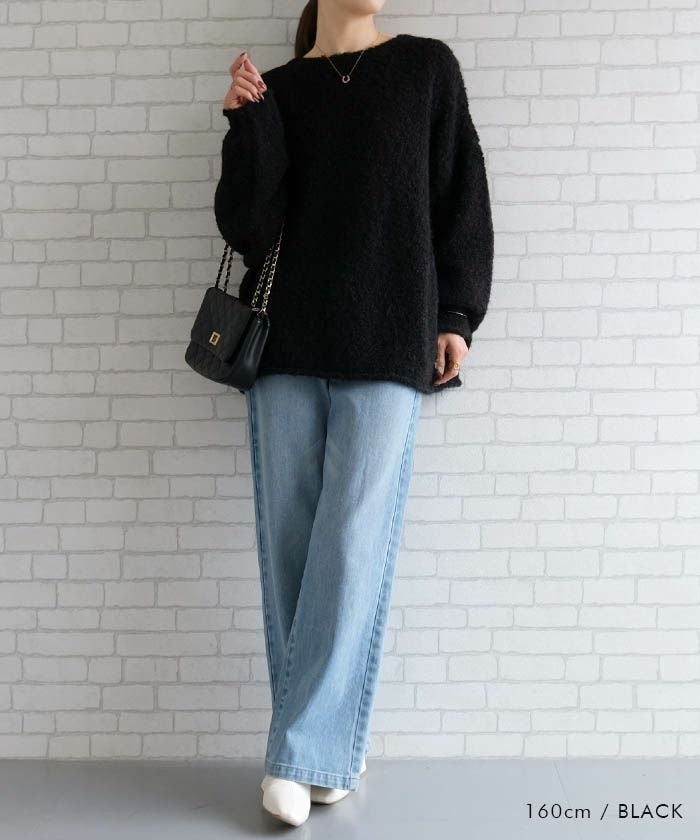 送料無料 シャギーニットラウンドネックトップス レディース 春 秋 冬 | アクアガレージ aquagarage