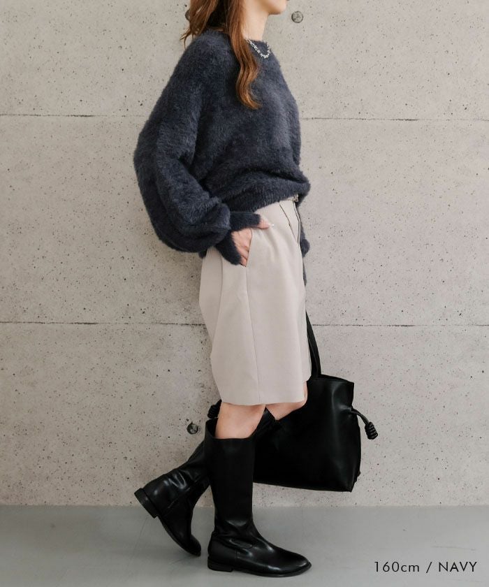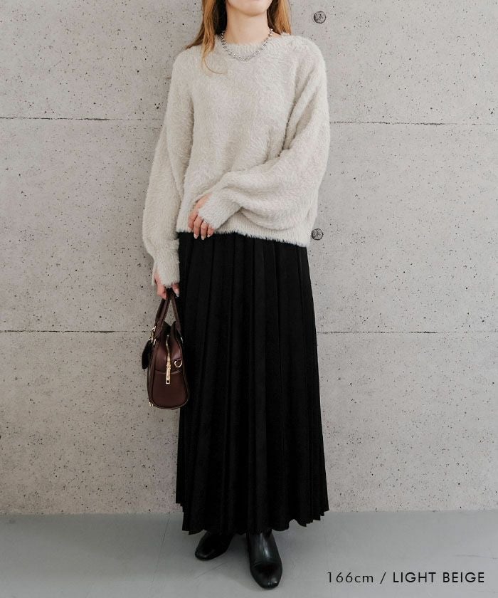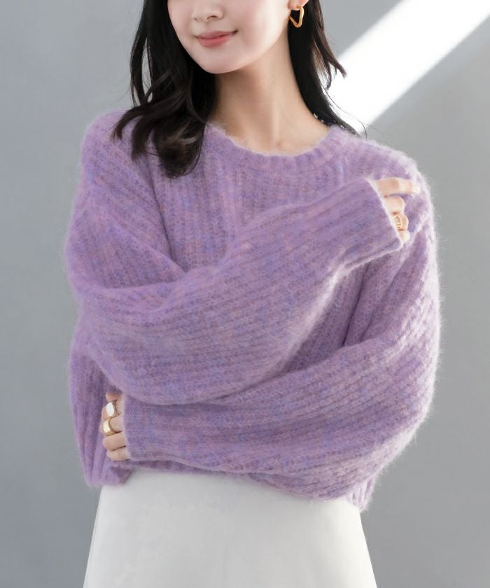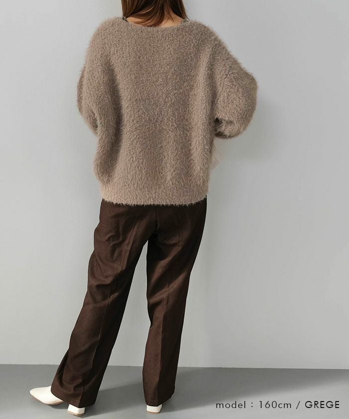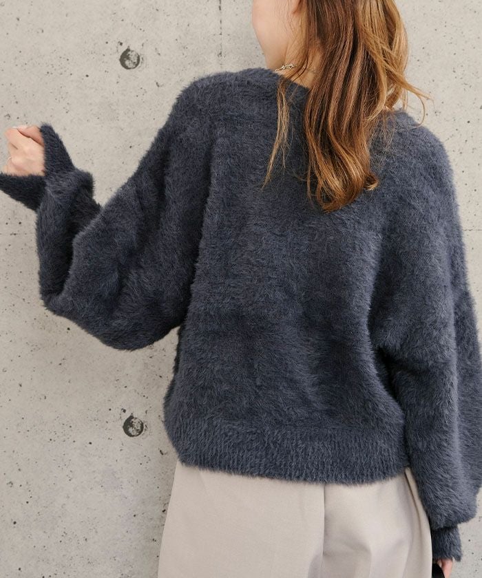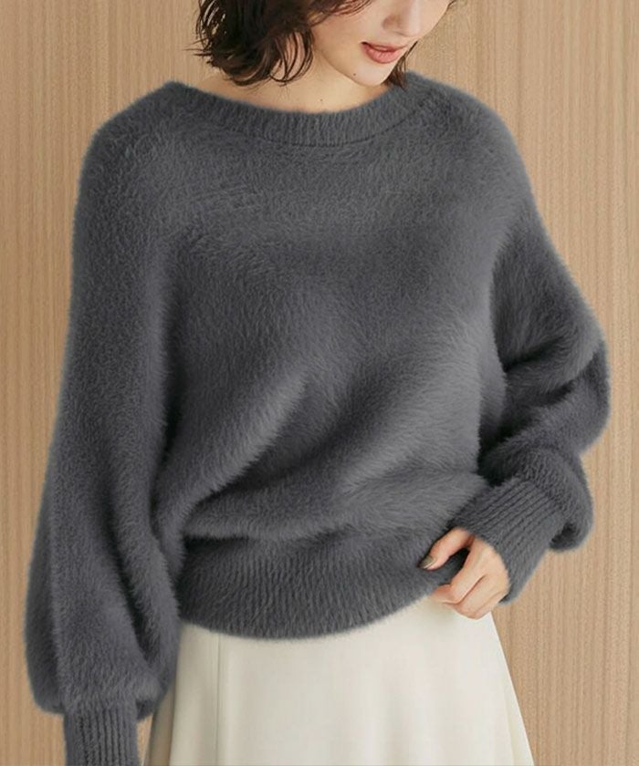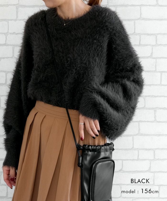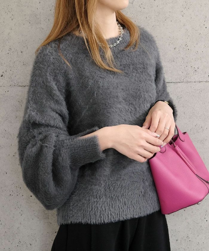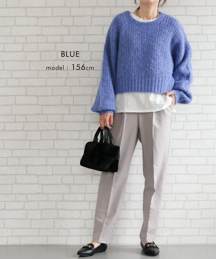 送料無料 シャギーニットラウンドネックトップス レディース 春 秋 冬 | アクアガレージ aquagarage