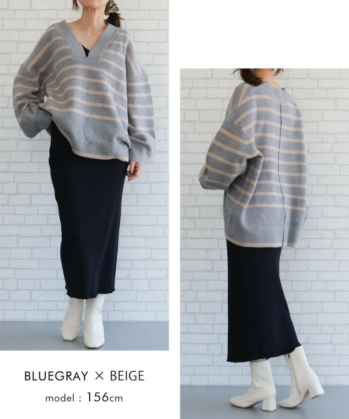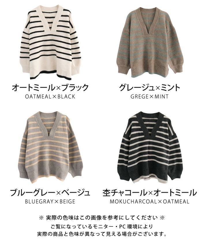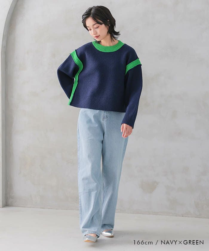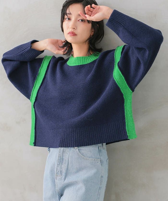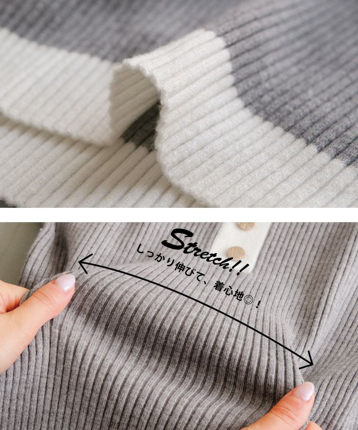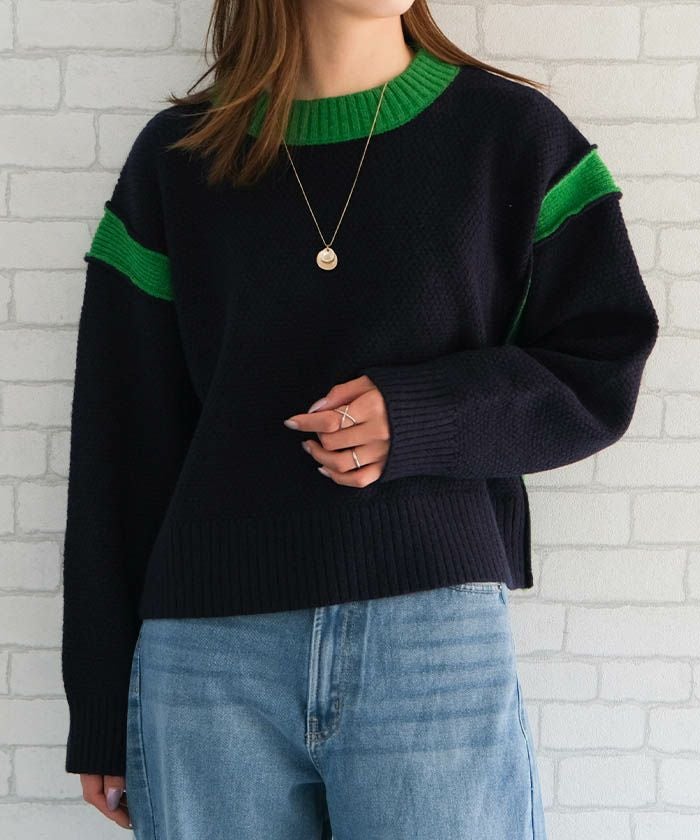 バイカラーラインニットトップス レディース 秋 冬 | アクアガレージ aquagarage