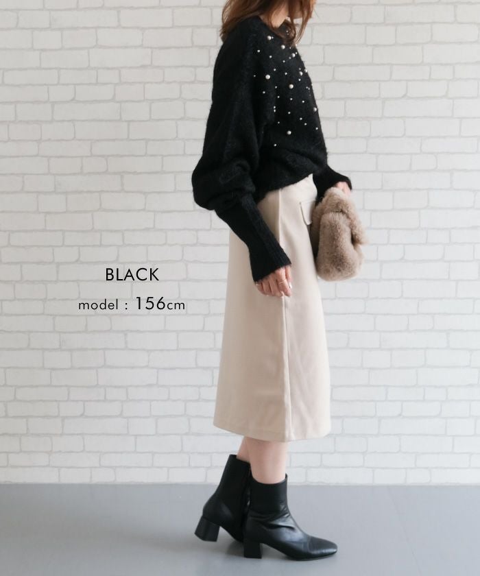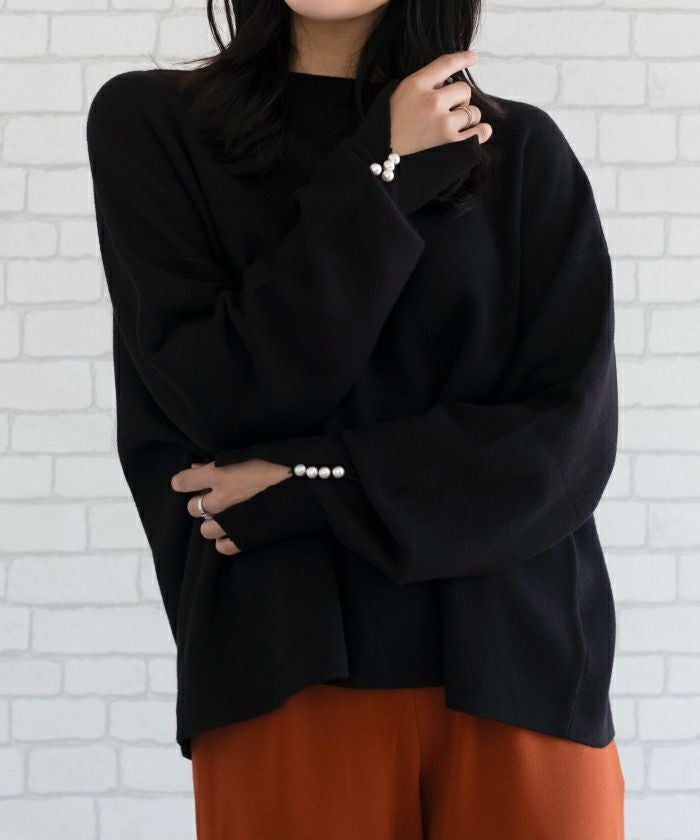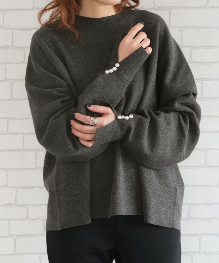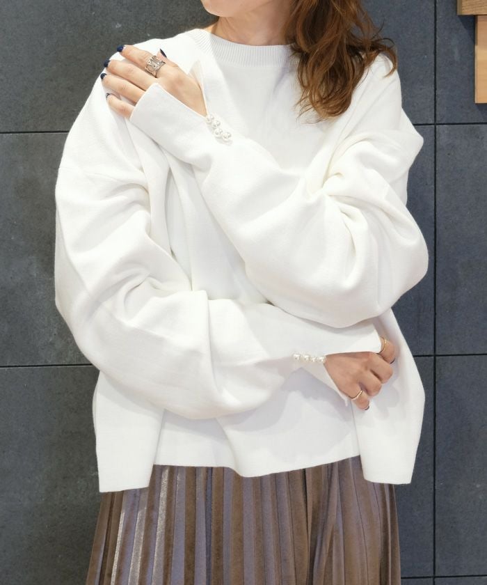送料無料 袖パールデザインニット レディース 秋 冬 | アクアガレージ aquagarage