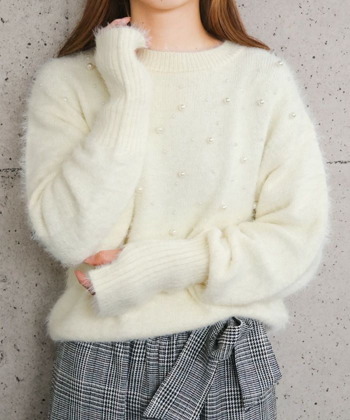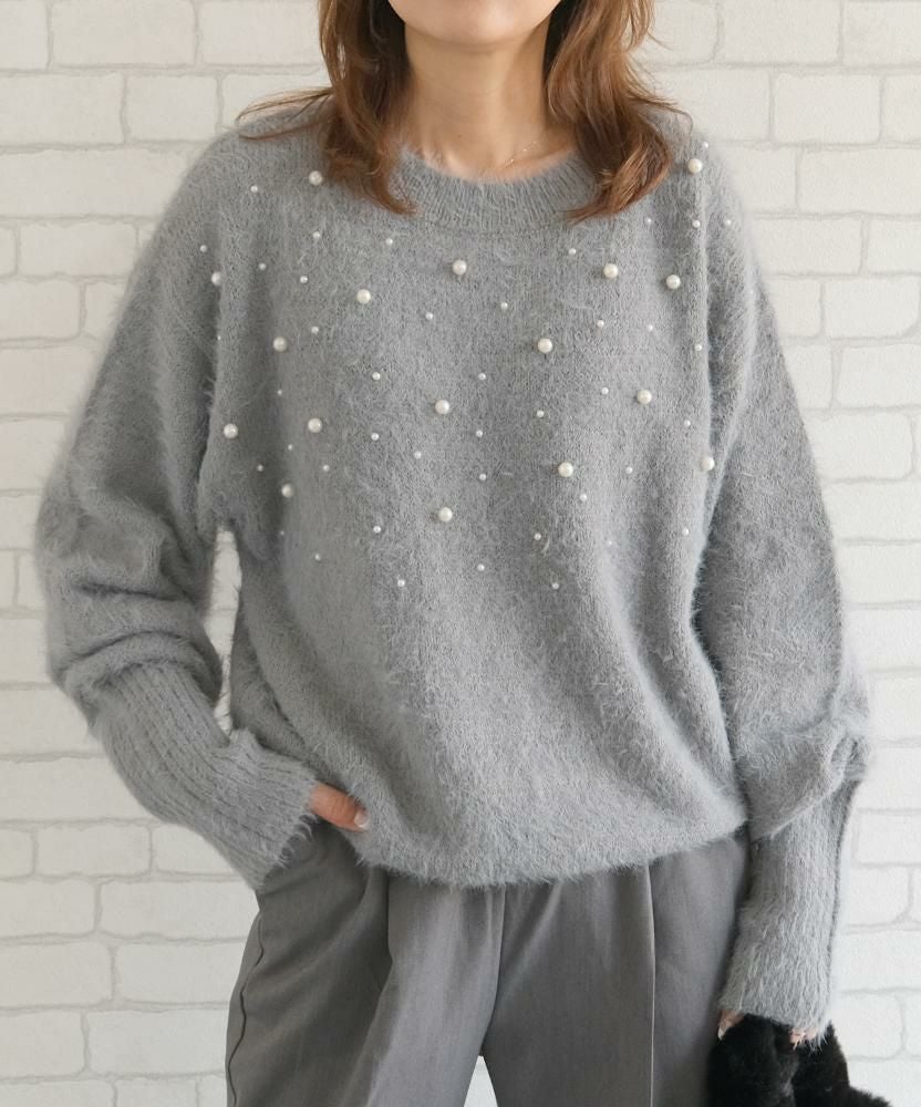 パールorビジューニットトップス 春 秋 冬 | アクアガレージ aquagarage