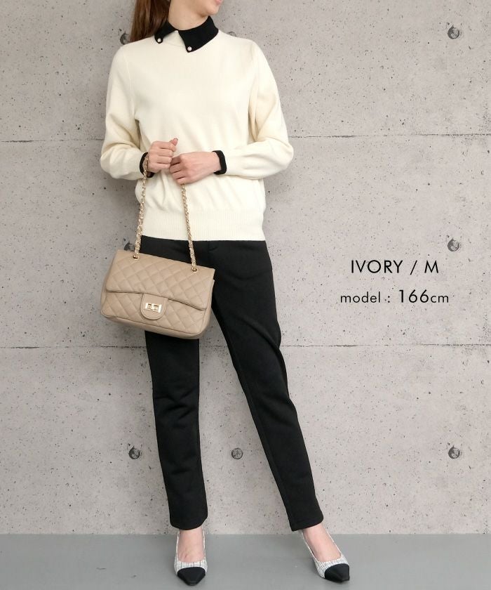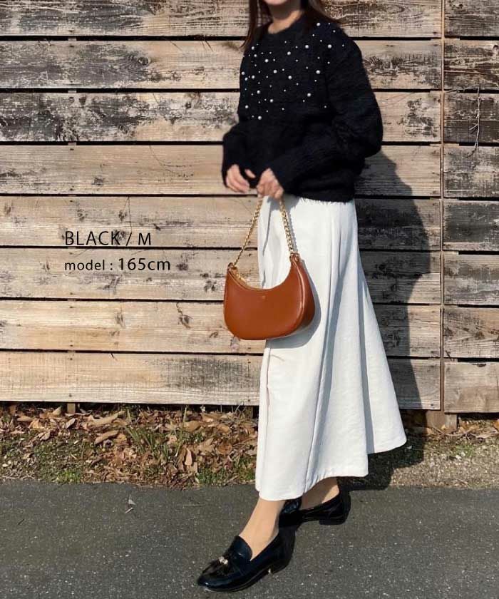送料無料 パールネックニットトップス レディース 秋 冬 長袖 M L | アクアガレージ aquagarage