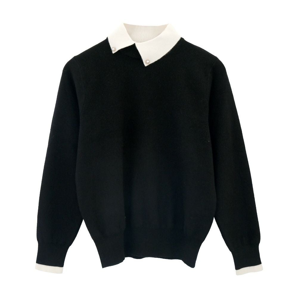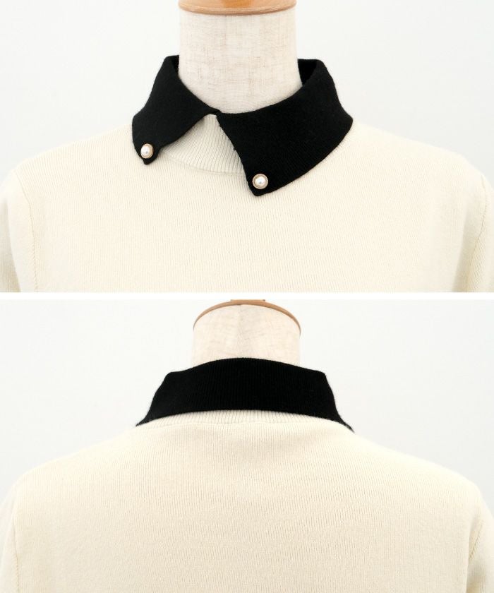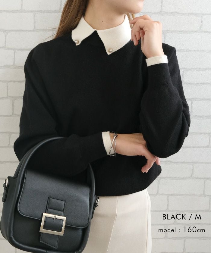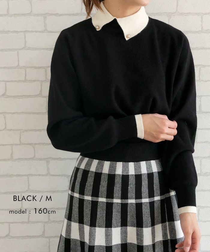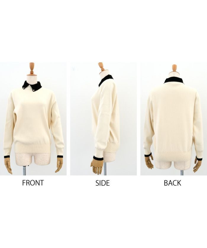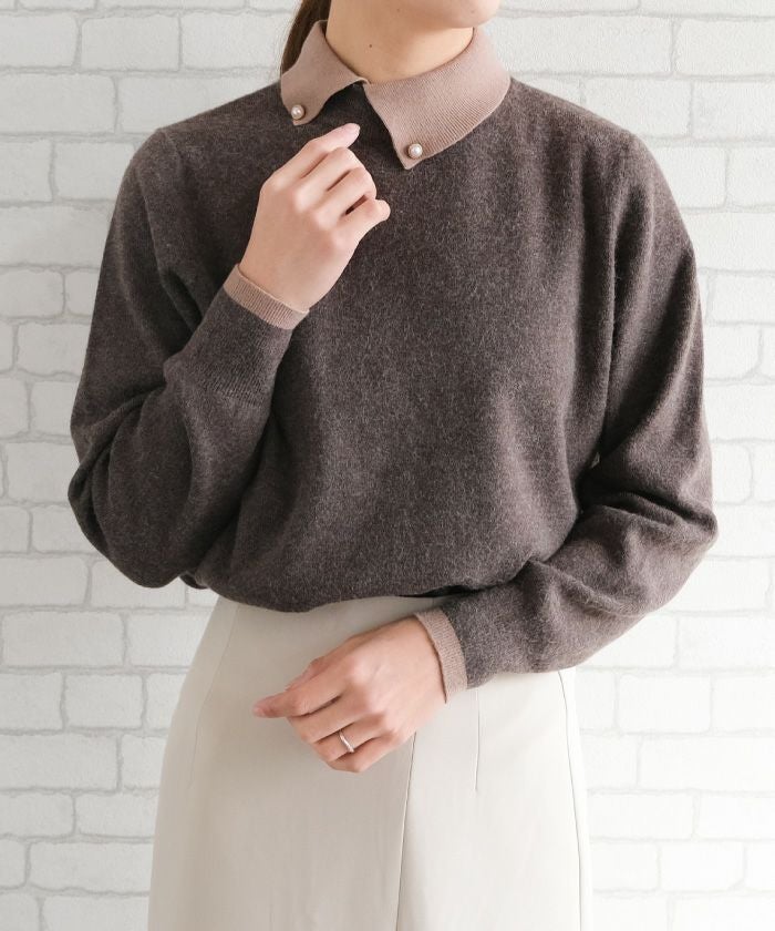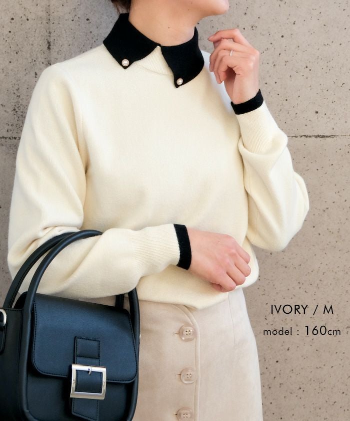 送料無料 ポイントパール襟付きニット レディース 春 秋 冬 M L 長袖 ≪ゆうメール便配送30・代引不可≫ | アクアガレージ aquagarage