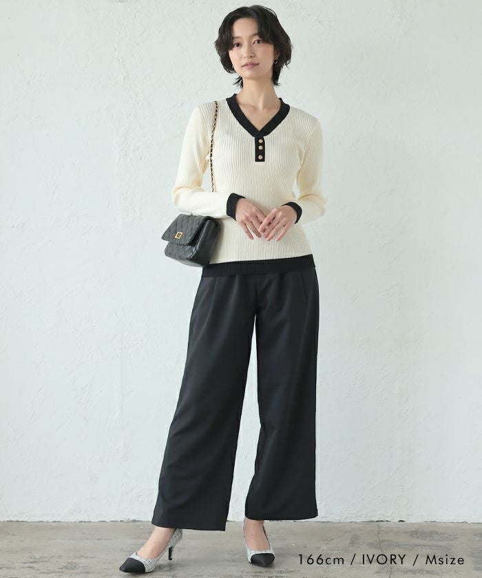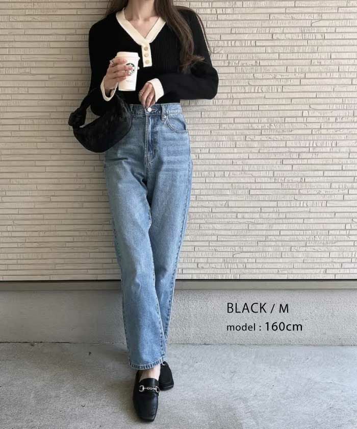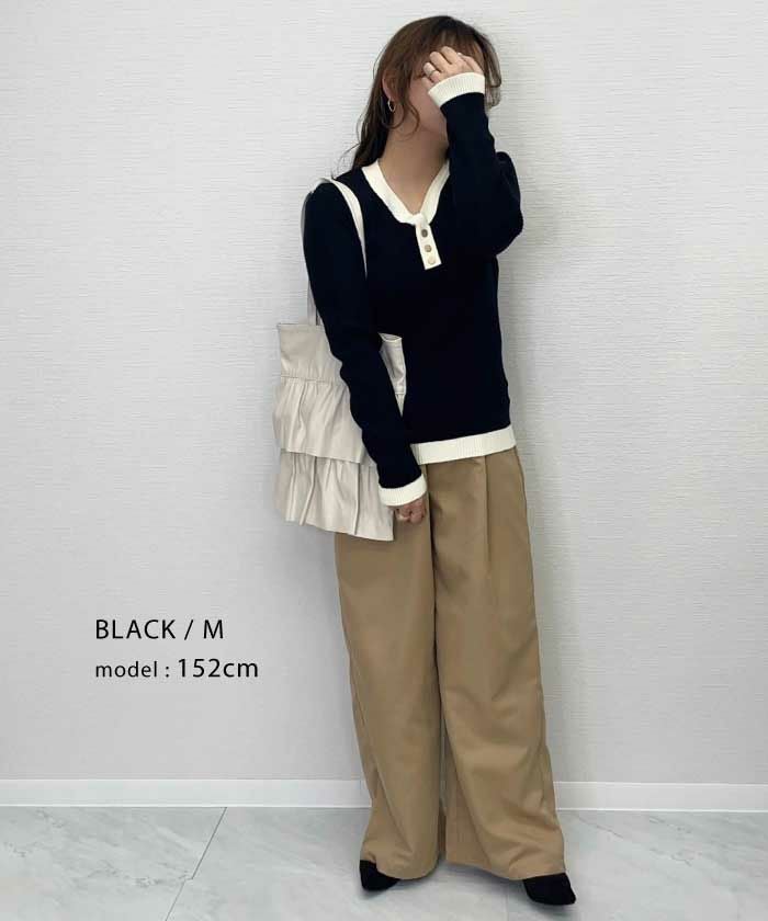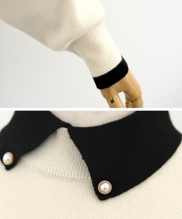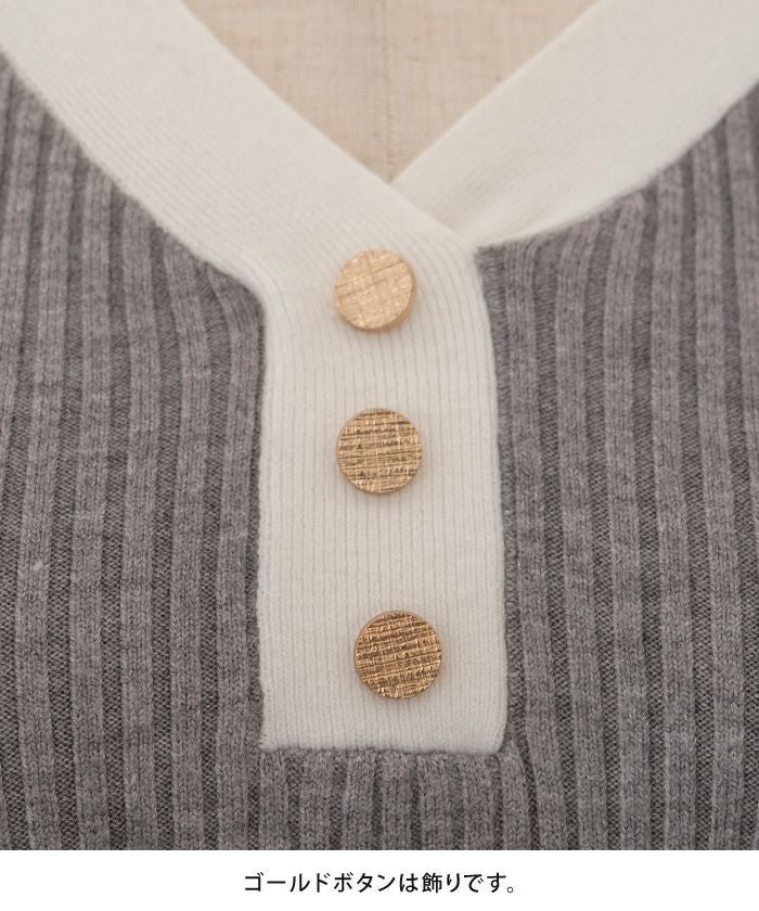 送料無料 パール調ボタン付き配色ニット 春 秋 冬 M L | アクアガレージ aquagarage ≪ゆうメール便配送30・代引不可≫
