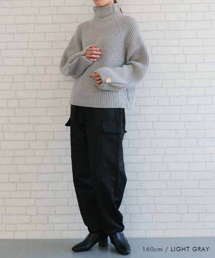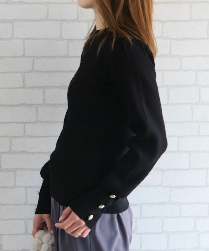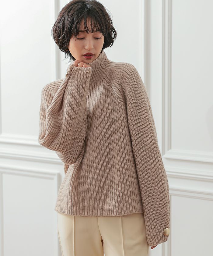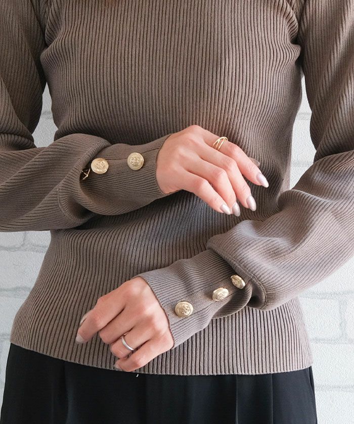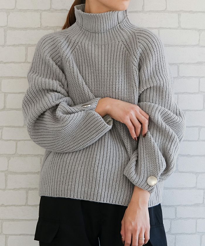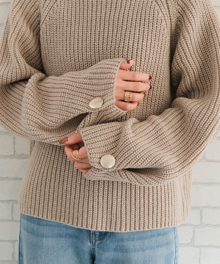 袖ボタンハイネックニットトップス レディース 秋 冬 | アクアガレージ aquagarage
