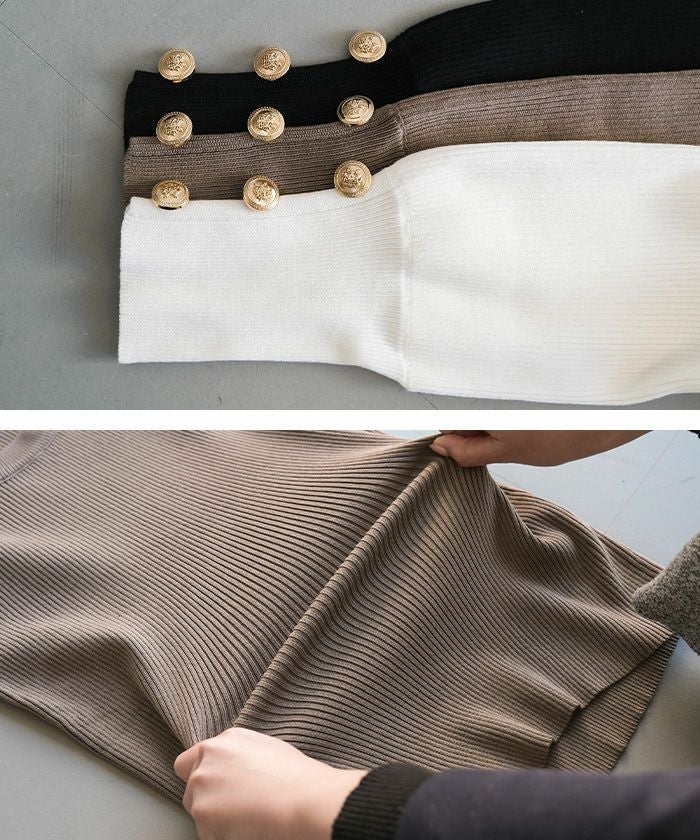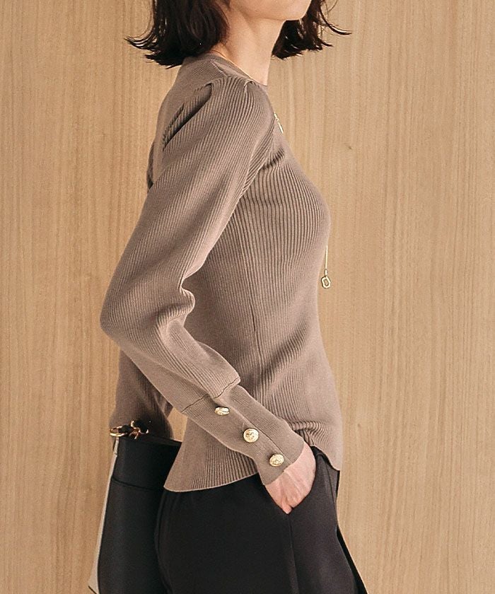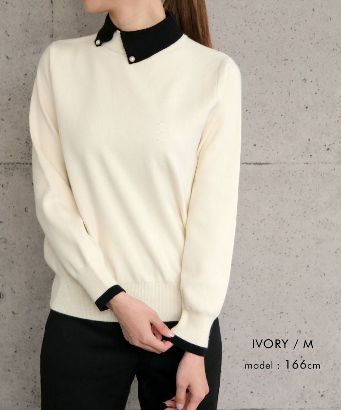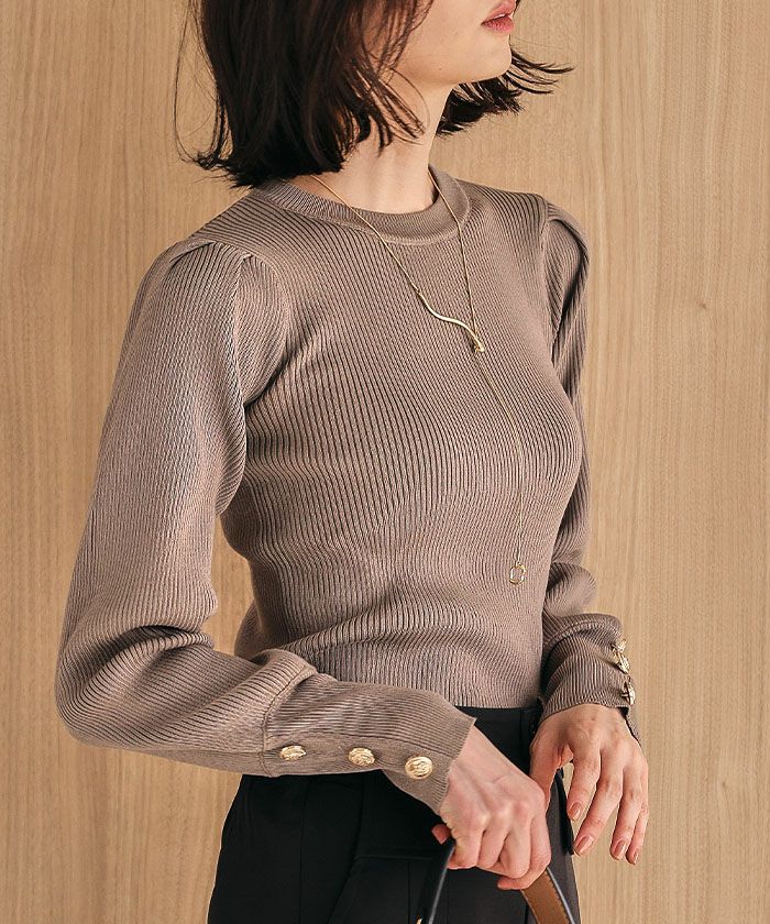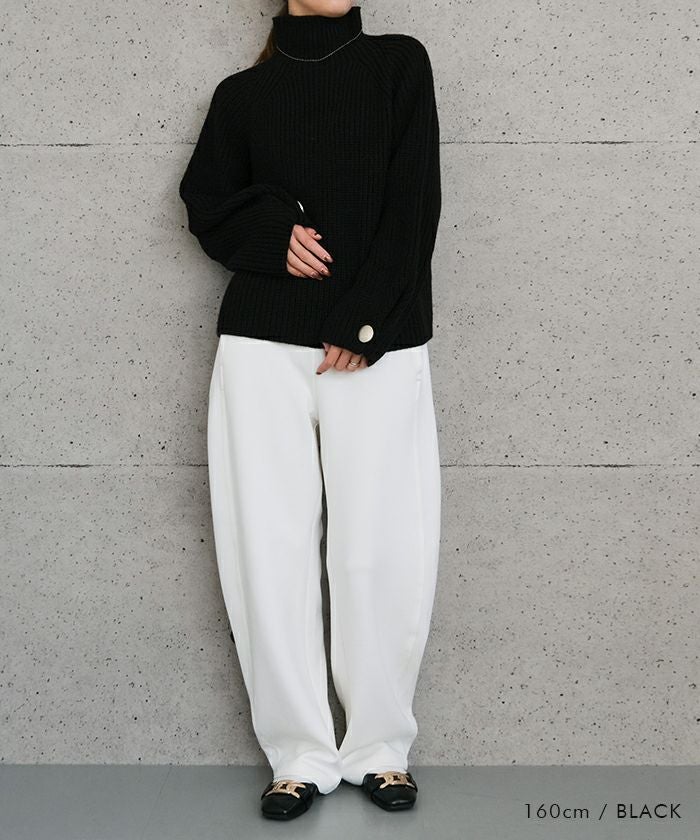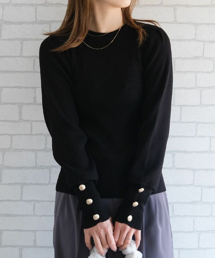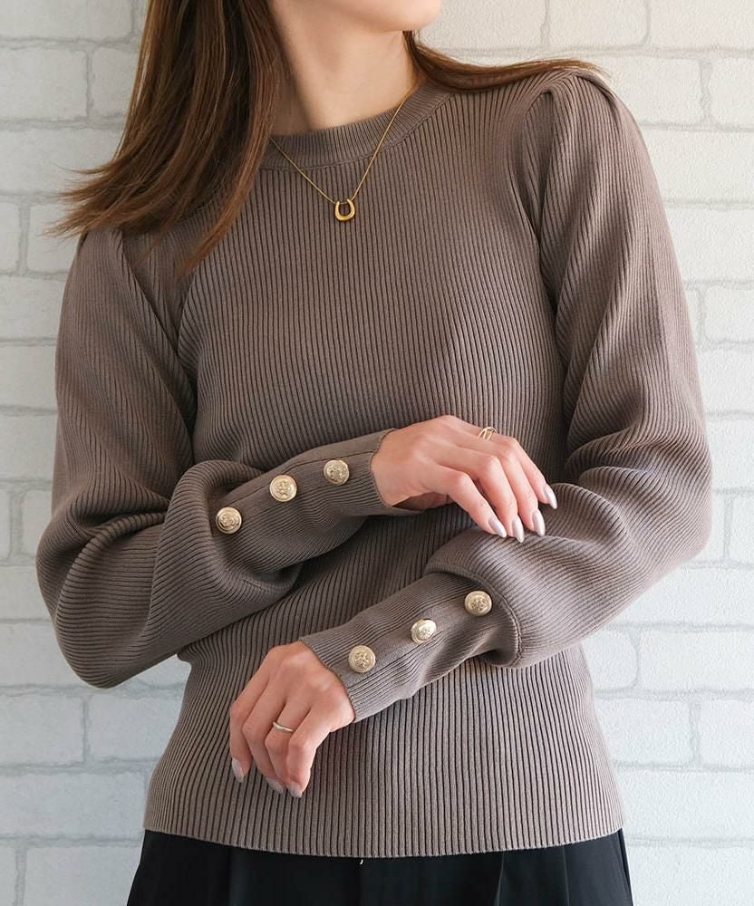袖ボタンハイネックニットトップス レディース 秋 冬 | アクアガレージ aquagarage