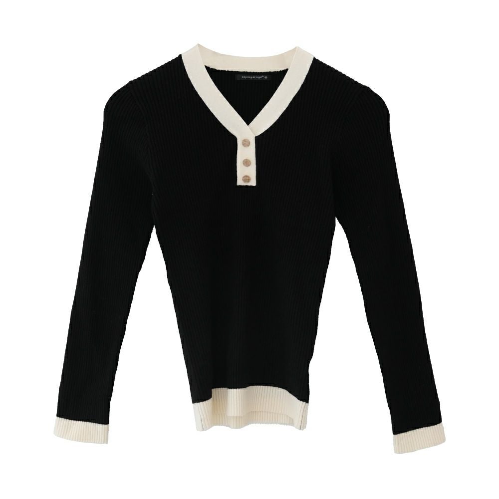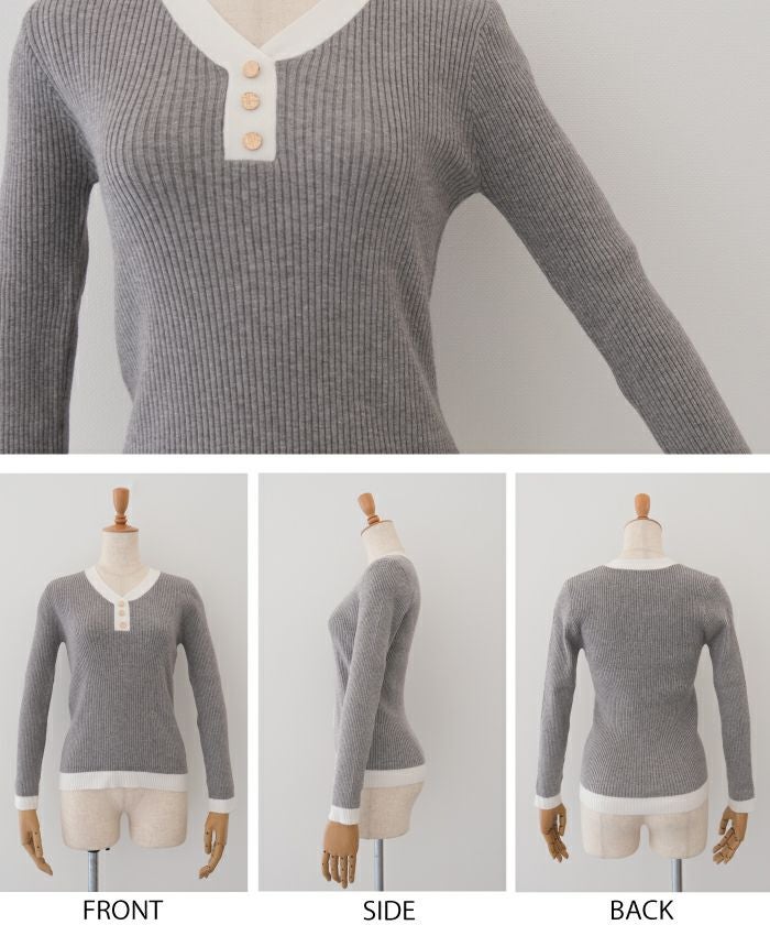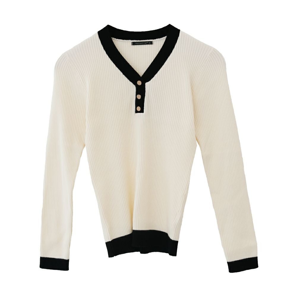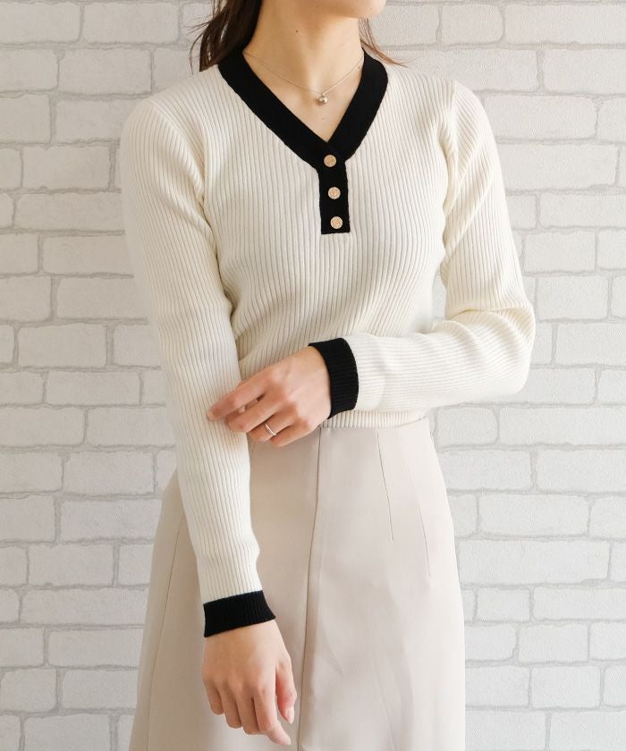 送料無料 バイカラーVネックリブニット 春 秋 冬 M L≪ゆうメール便配送30・代引不可≫ | アクアガレージ aquagarage