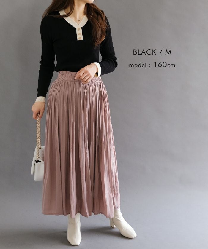 送料無料 ネックタイプが選べるプリーツ袖ニット レディース 春 秋 ≪ゆうメール便配送30・代引不可≫ | アクアガレージ aquagarage