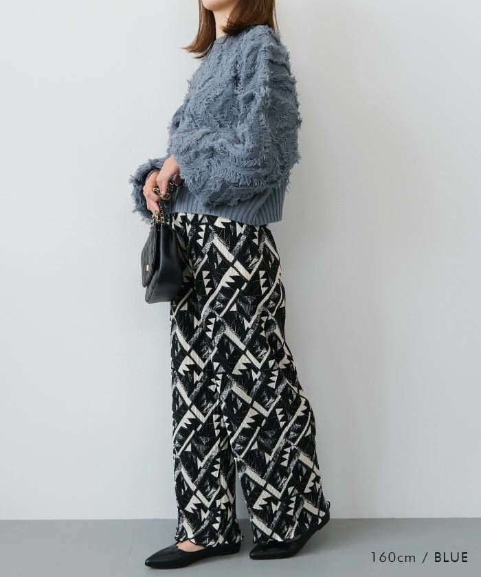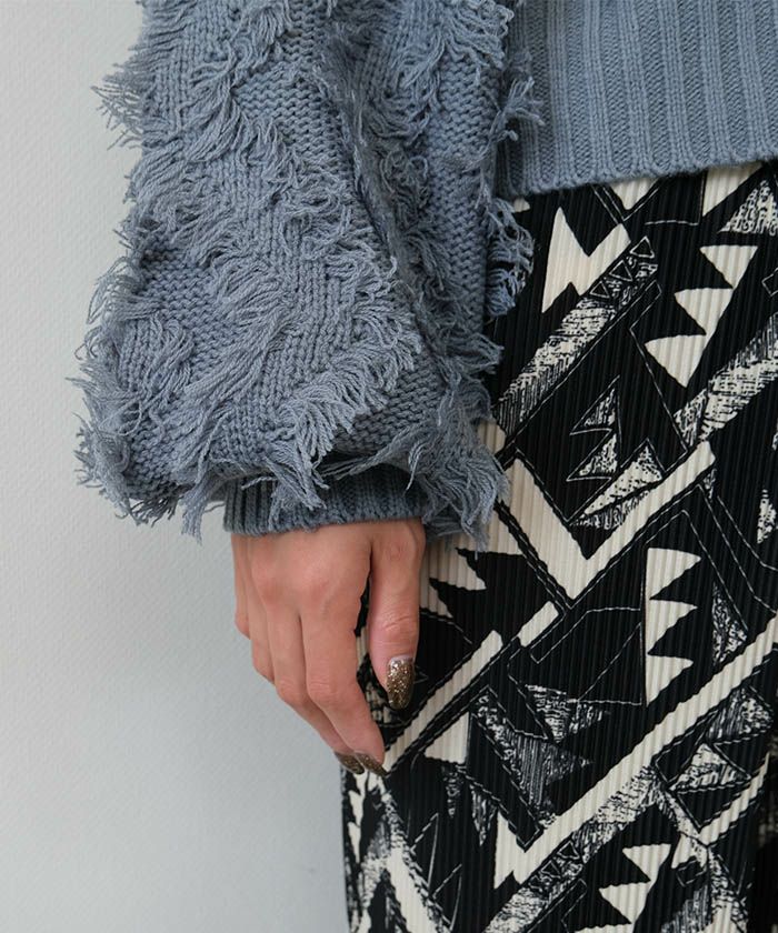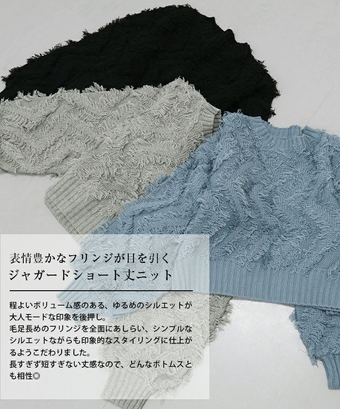 送料無料 フリンジジャガードショートニットトップス レディース | アクアガレージ aquagarage