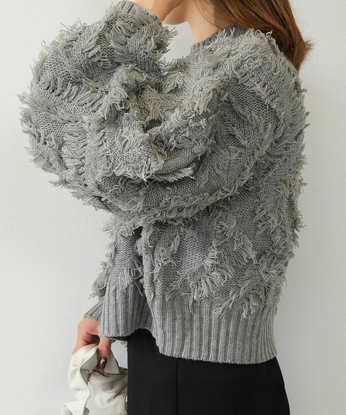 送料無料 袖口スリットシャギーニットトップス 秋 冬 M レディース | アクアガレージ aquagarage
