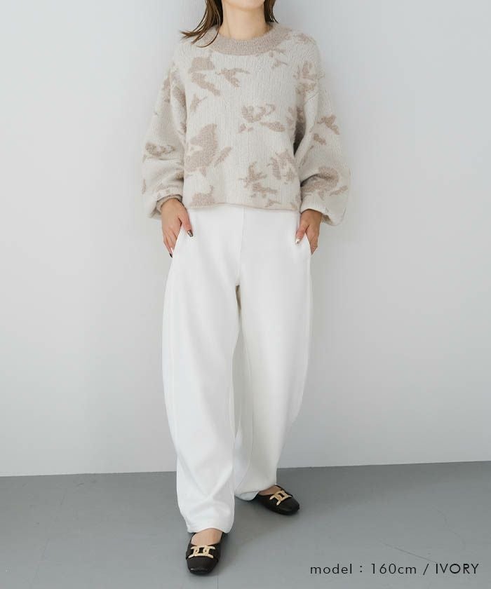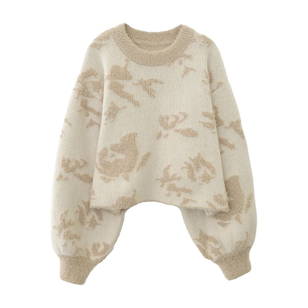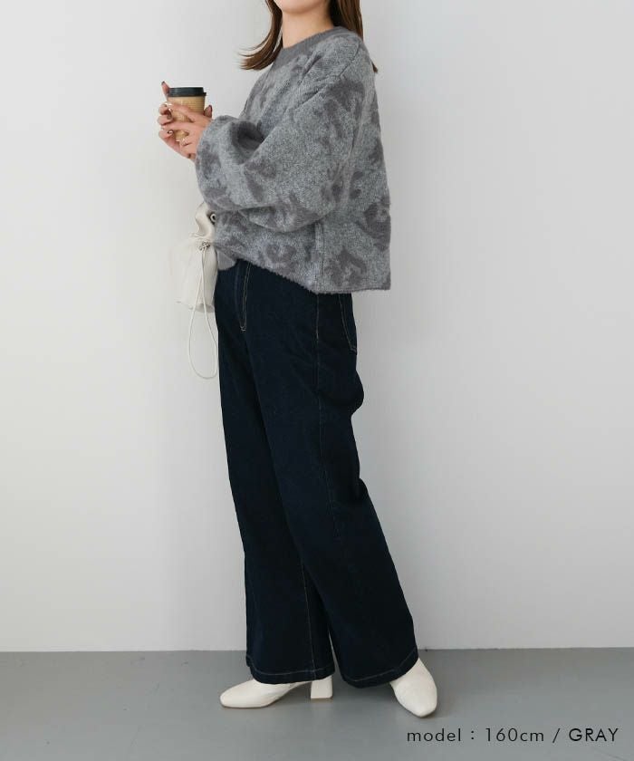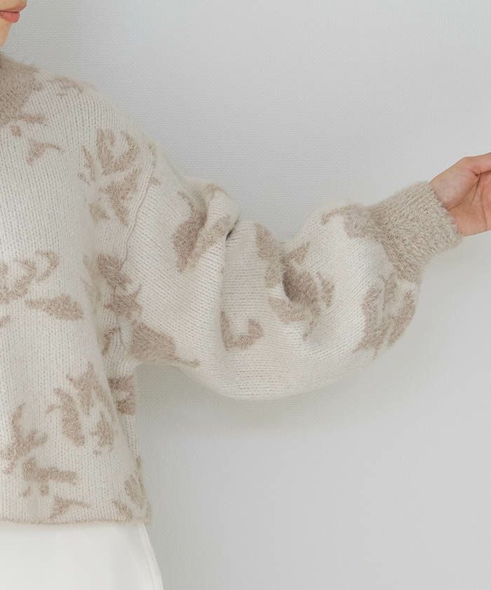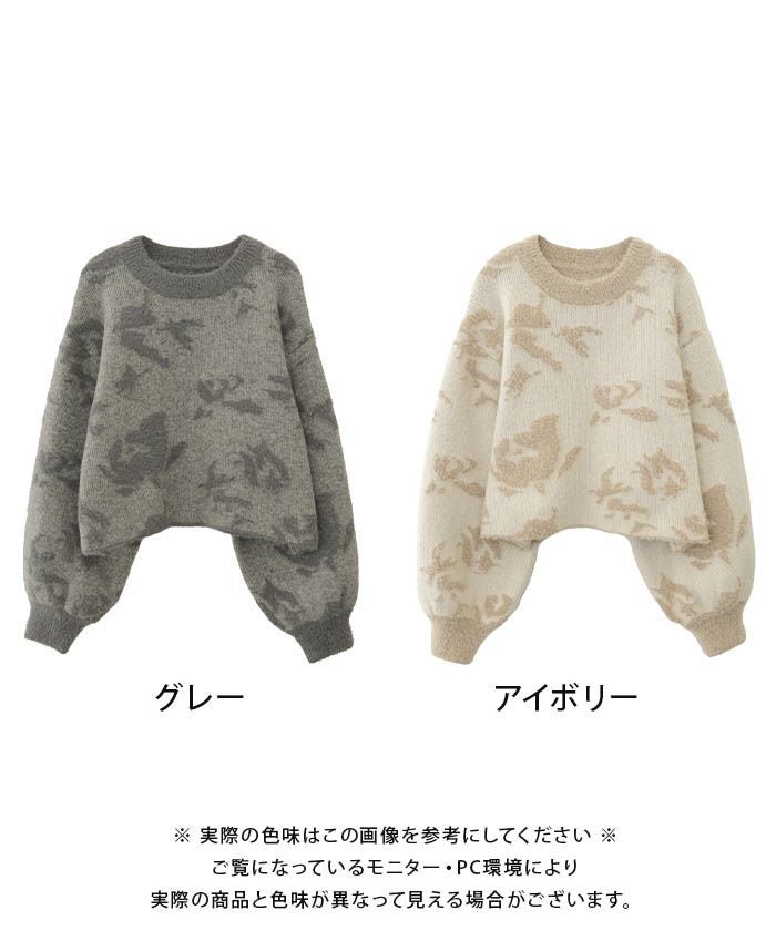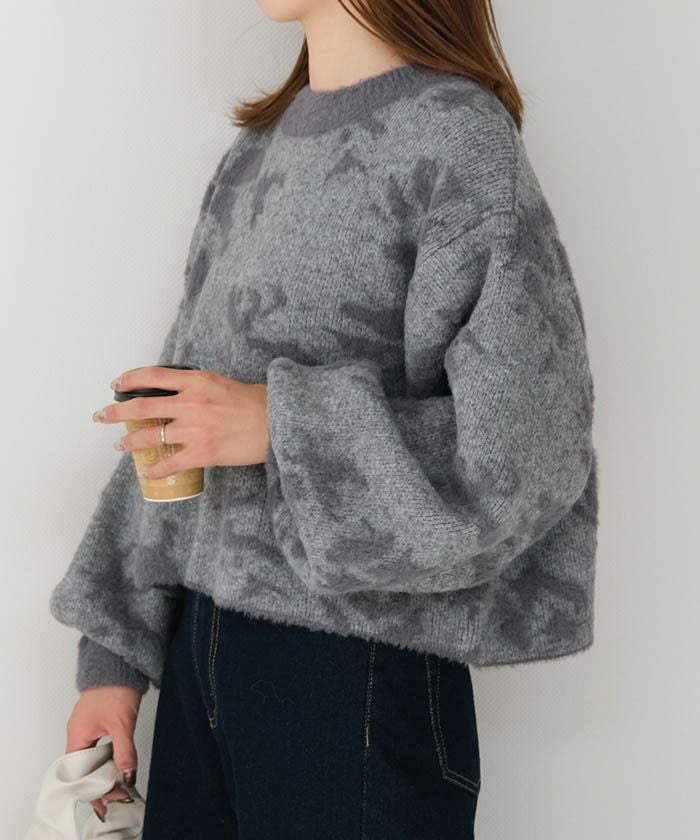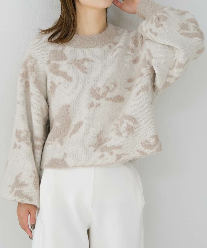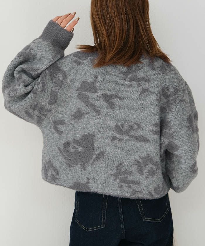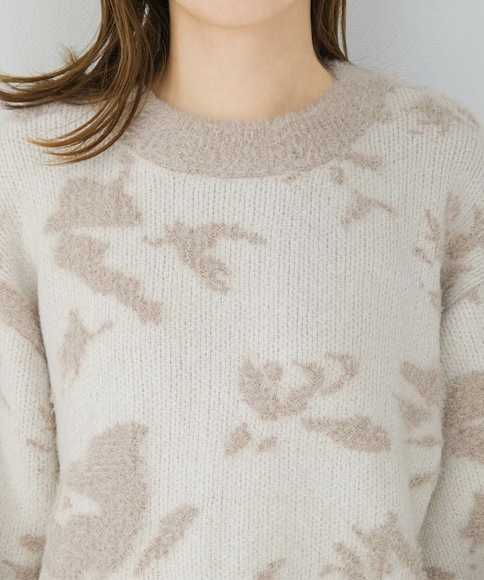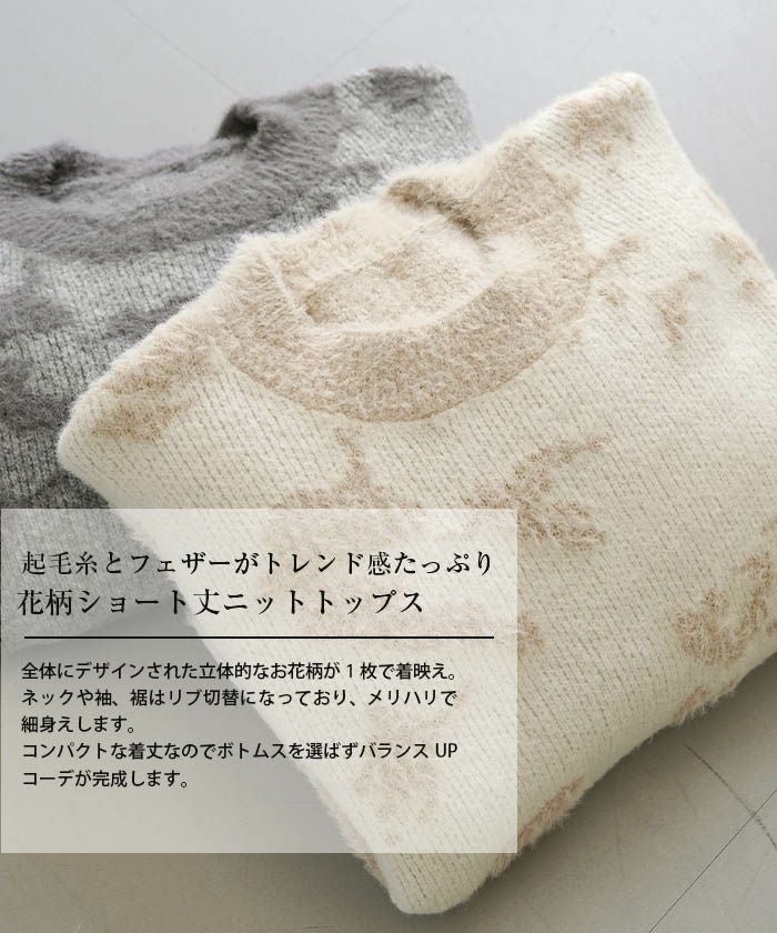 フェザーヤーン花柄ショート丈ニットトップス 秋 冬 | アクアガレージ aquagarage