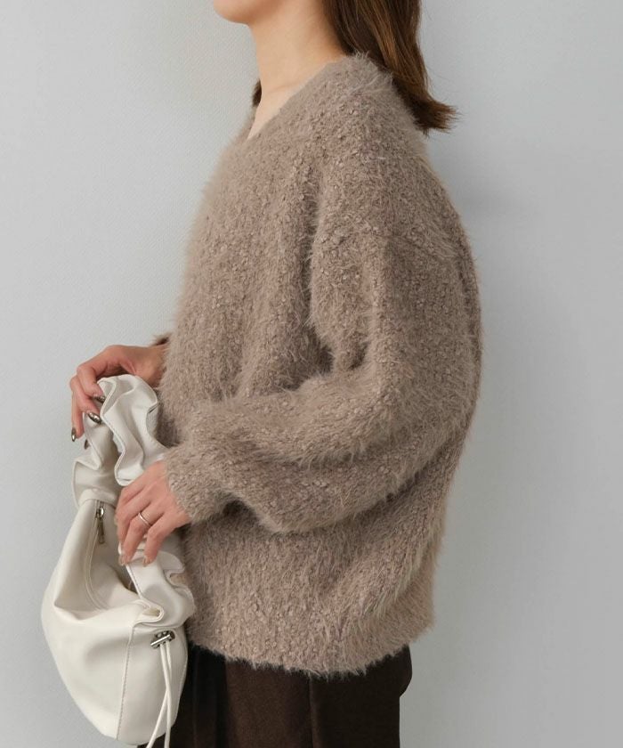 ネップ入りシャギーヤーンニットトップス M レディース 春 秋 冬 | アクアガレージ aquagarage