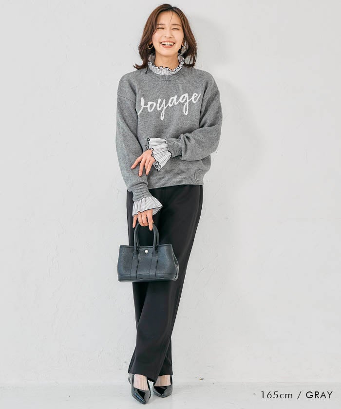 送料無料 袖・襟シフォンプリーツニットトップス レディース 春 秋 冬 M L LL 長袖 ≪ゆうメール便配送30・代引不可≫ | アクアガレージ aquagarage
