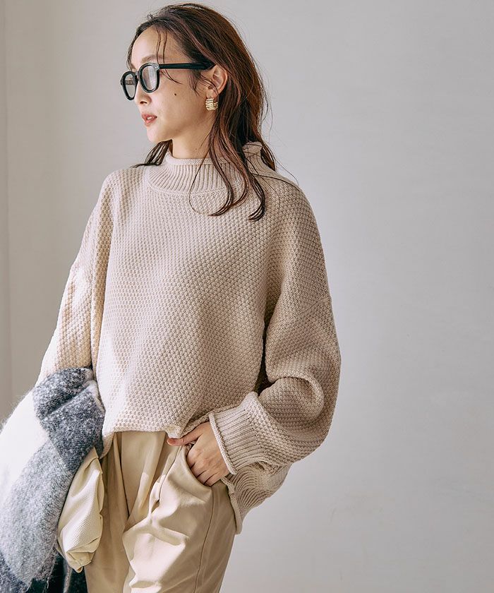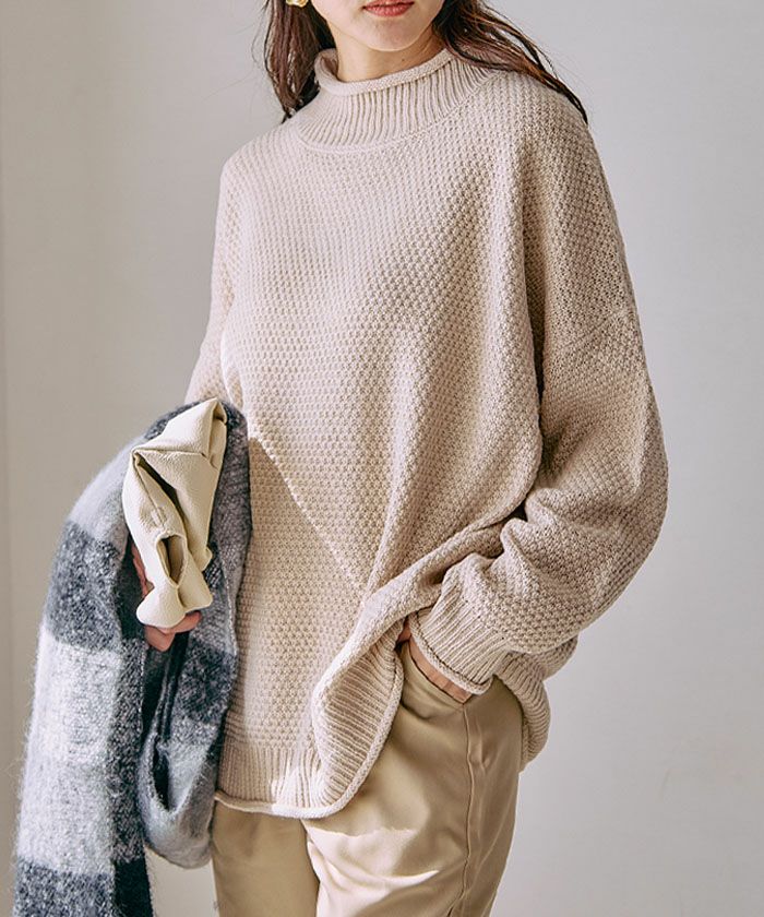 鹿の子編みハイネックニット レディース 春 秋 冬 | アクアガレージ aquagarage