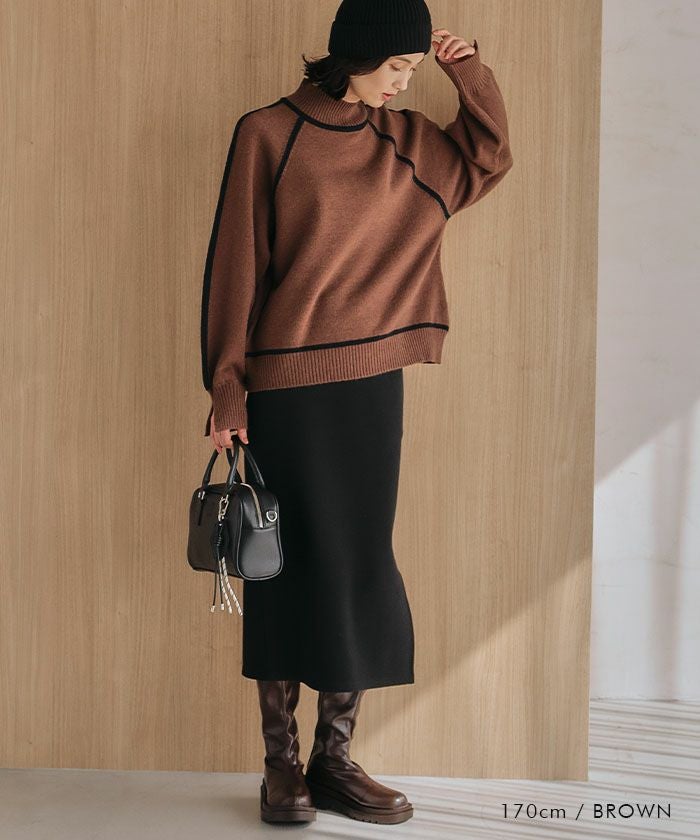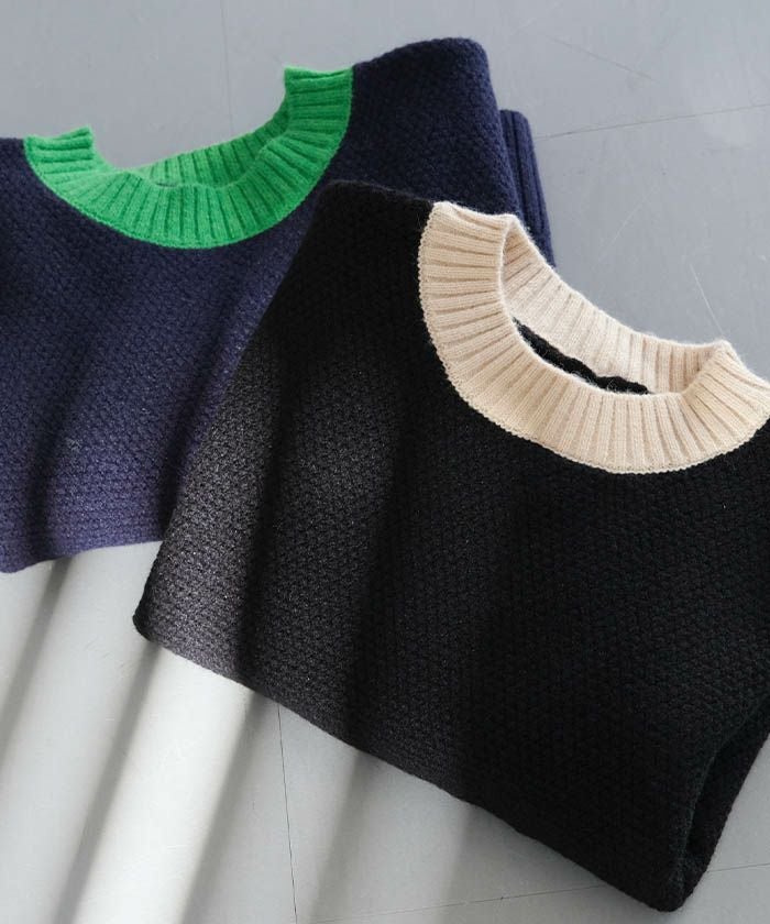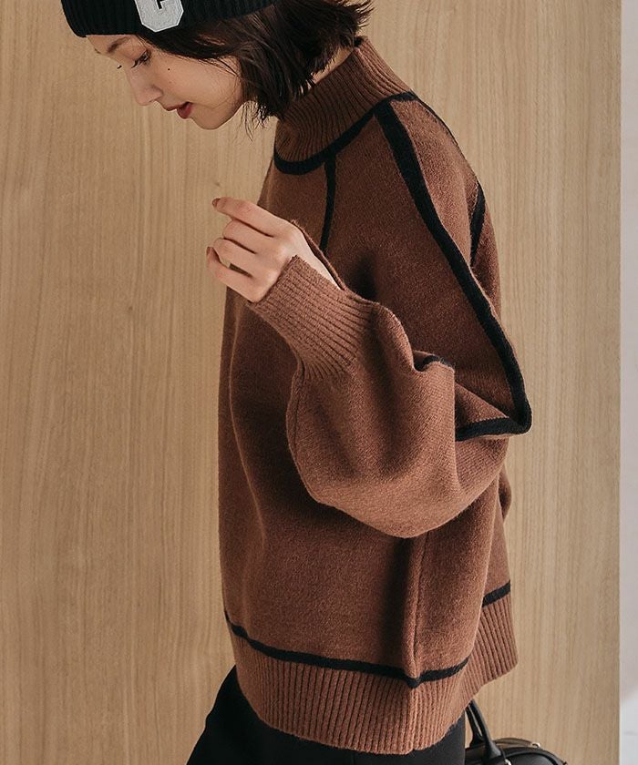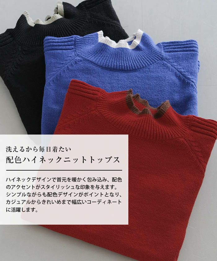 配色ハイネックニットトップス レディース 秋 冬 | アクアガレージ aquagarage