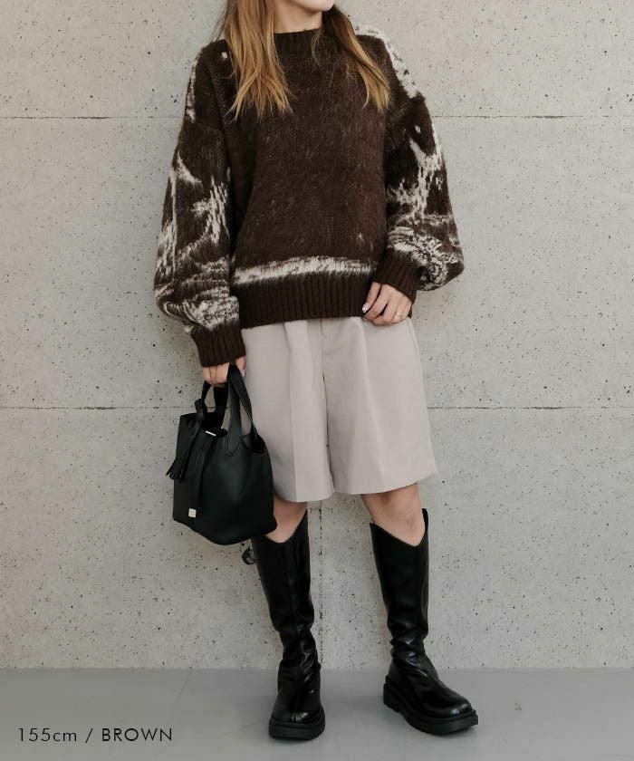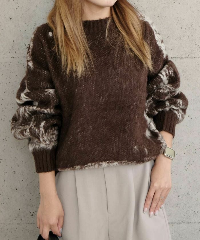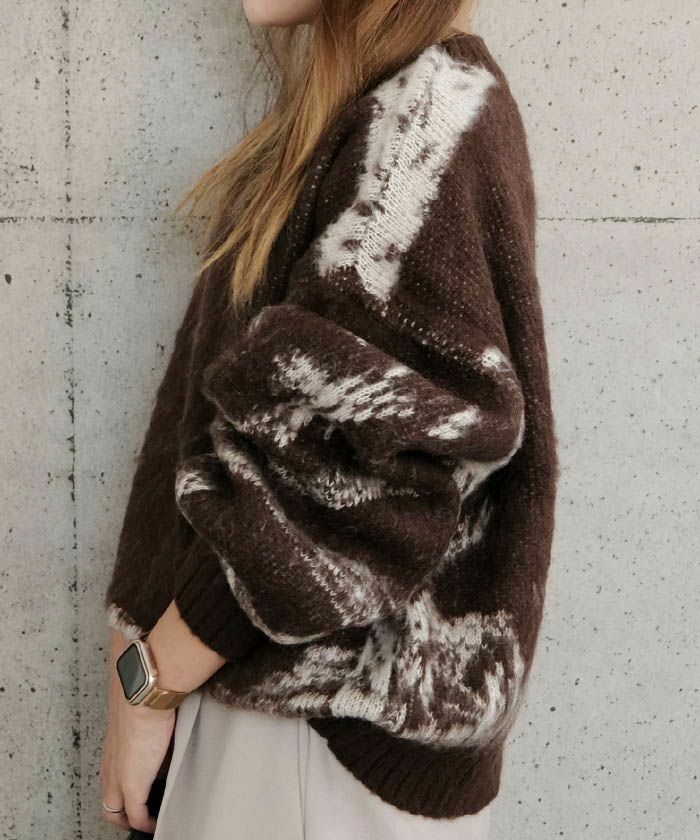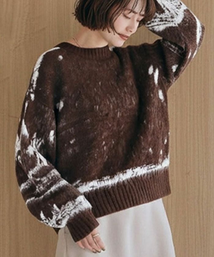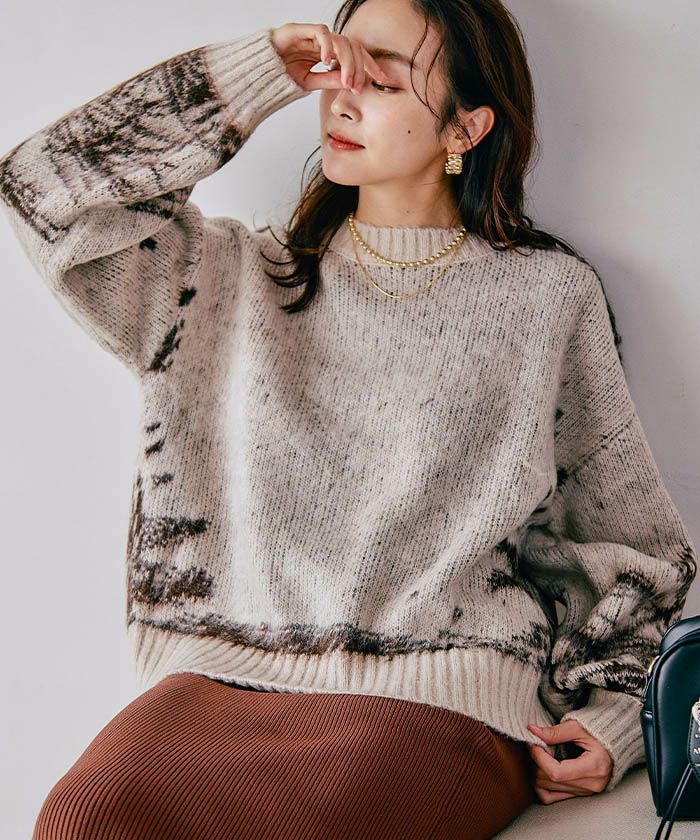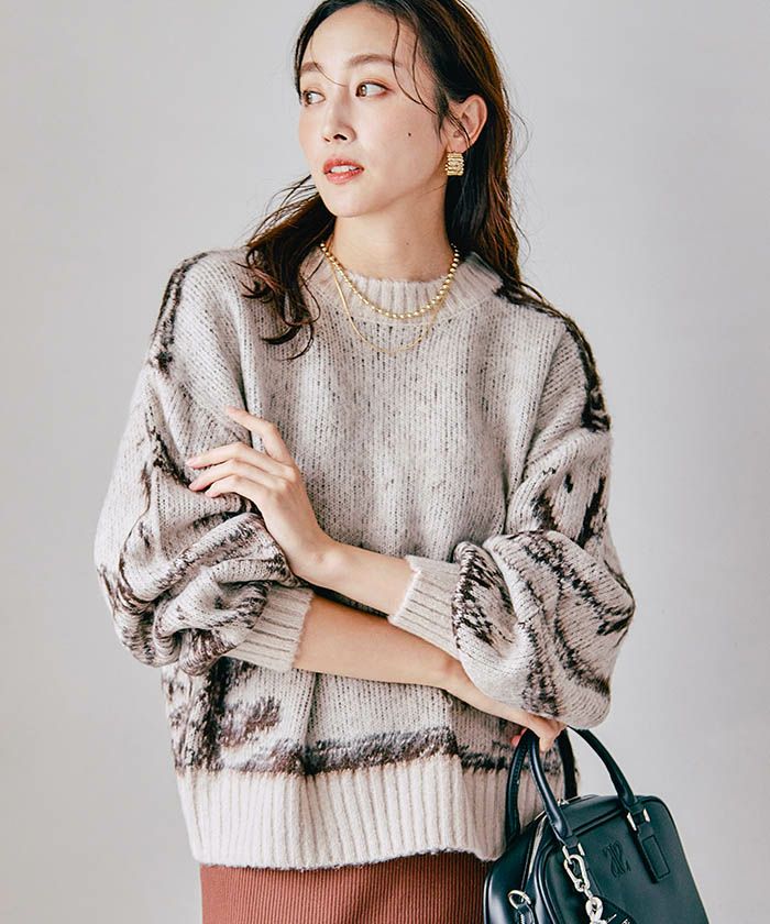 送料無料 ニュアンス柄ニットトップス 秋 冬 M レディース | アクアガレージ aquagarage