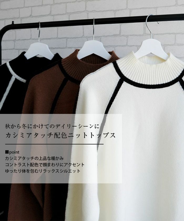 送料無料 カシミアタッチ配色ニットトップス 秋 冬 M レディース | アクアガレージ aquagarage