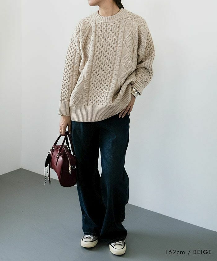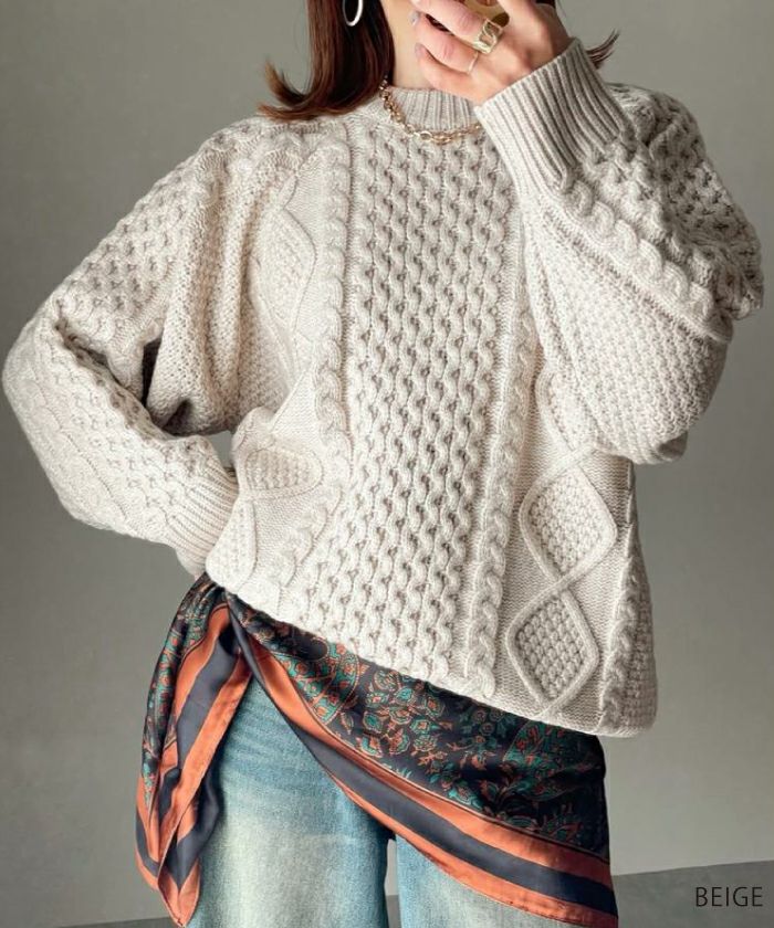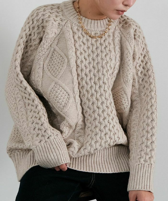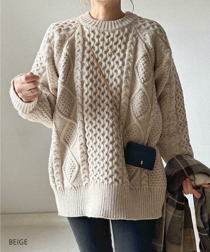 送料無料 ケーブル編みニットトップス 秋 冬 M レディース | アクアガレージ aquagarage