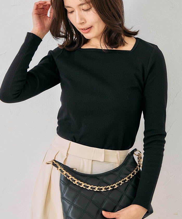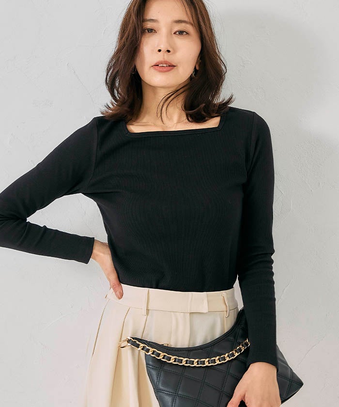 送料無料 ネックが選べるリブカットソー 春 秋 冬 M L≪ゆうメール便配送20・代引不可≫ | アクアガレージ aquagarage