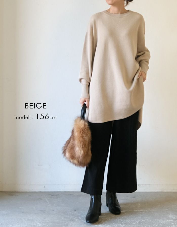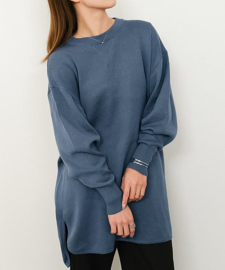 スウェットのようなリラックス感のある着心地のニットチュニック。 ニットのチクチクが苦手な方でも着用いただける優しい肌触り◎ 伸縮性のあるニットで、ストレスフリーな着心地を叶えます。 丈はお尻が隠れる長さで、気になる腰回りもカバーしてくれます。 着回しやすく、大人のカジュアルスタイルにピッタリなアイテムです。