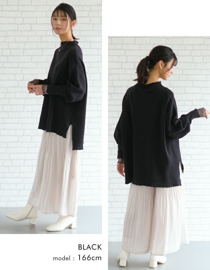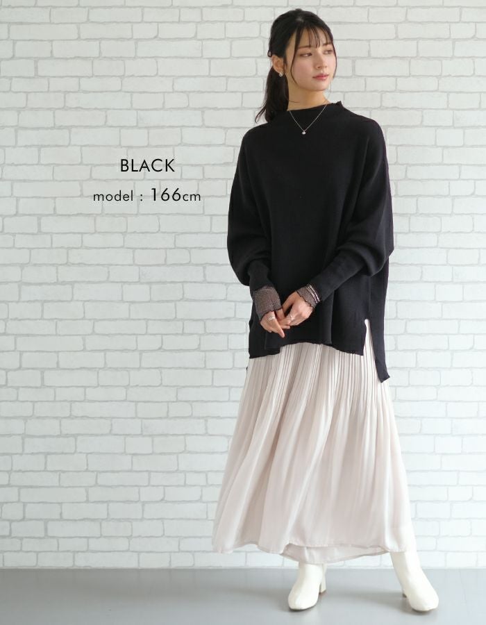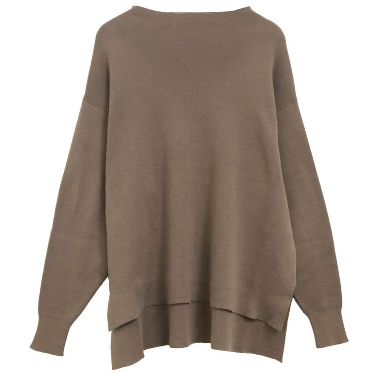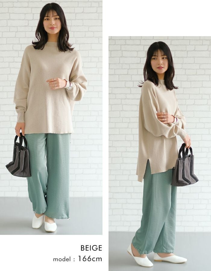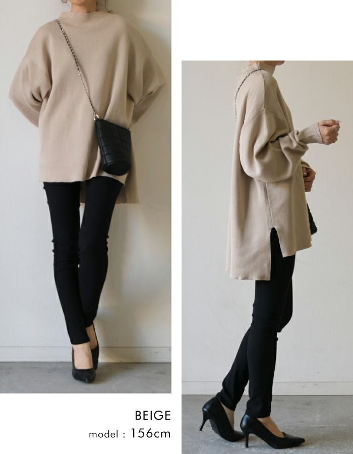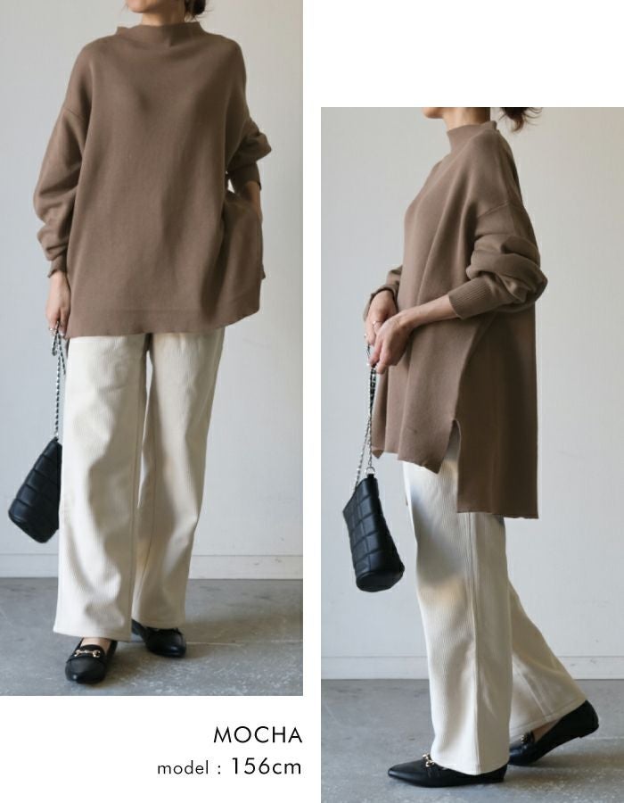 スウェットのようなリラックス感のある着心地のニットトップス。 ニットのチクチクが苦手な方でも着用いただける優しい肌触り◎ 伸縮性のあるニットで、ストレスフリーな着心地を叶えます。 短めのボトルネックなので、お顔周りをすっきりと見せてくれます。 丈はお尻が隠れる長さで、気になる腰回りもしっかりカバー♪ 着回しやすく、大人のカジュアルスタイルにピッタリなアイテムです。