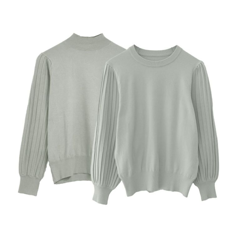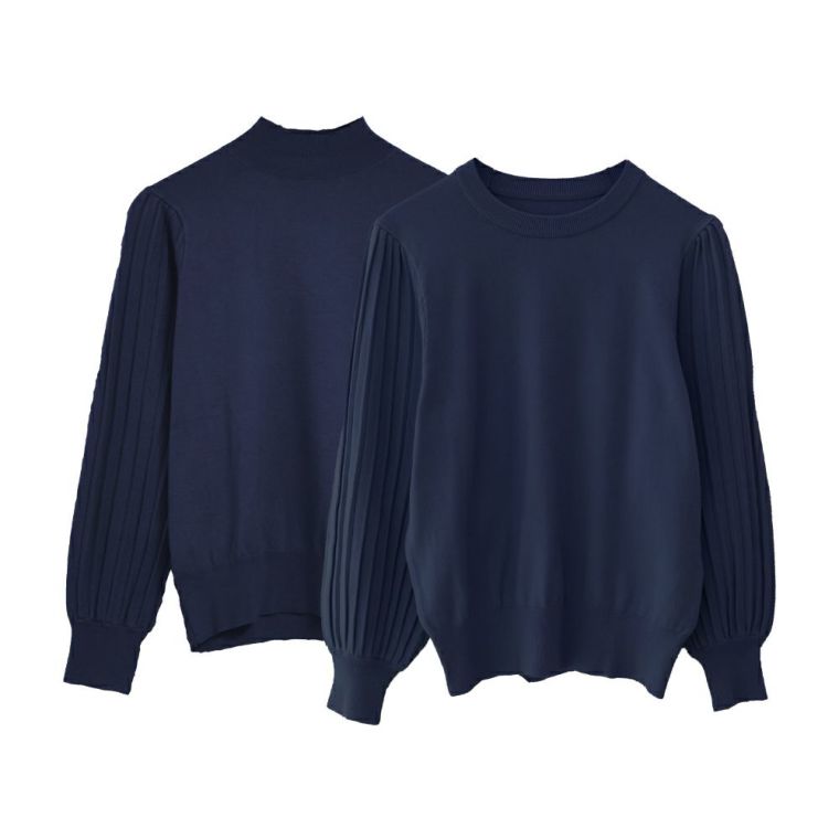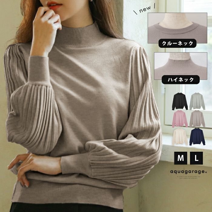 送料無料 ネックタイプが選べるプリーツ袖ニット レディース 春 秋 ≪ゆうメール便配送30・代引不可≫ | アクアガレージ aquagarage