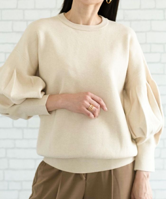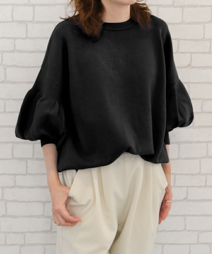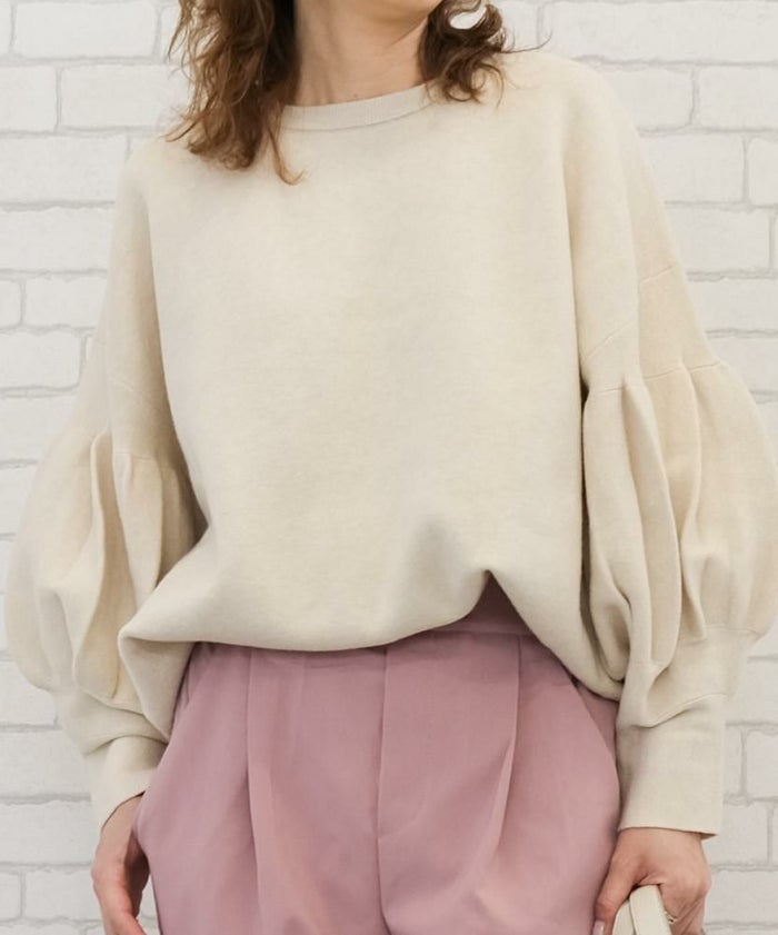 • 二の腕を自然にカバーしてくれるバルーン袖ニットトップス