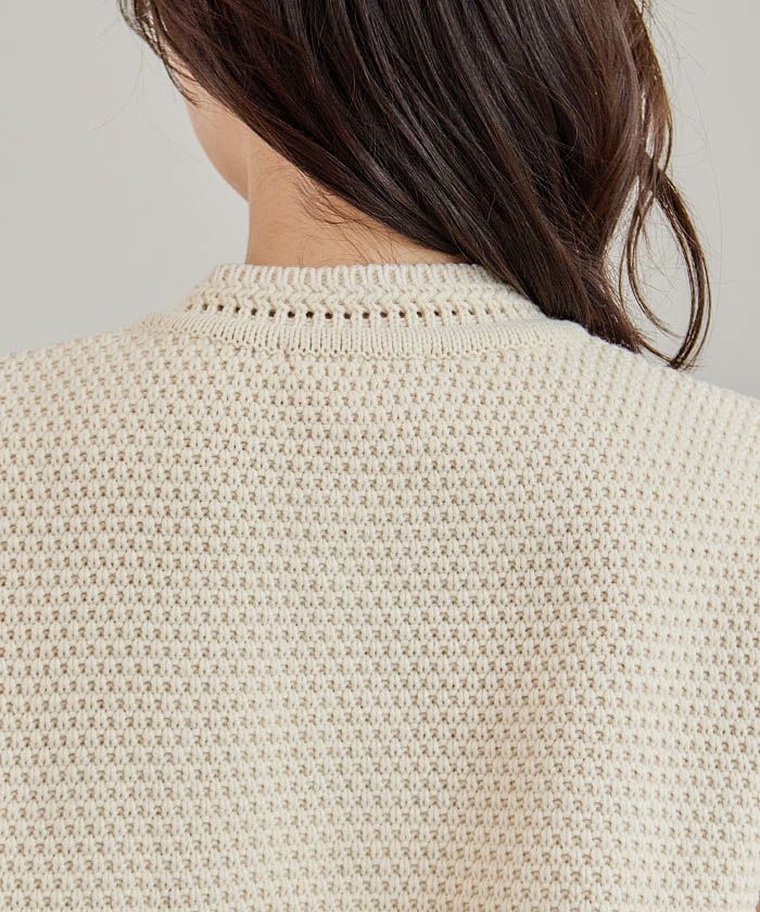 柔らかな肌ざわりと、程よい厚みでシーズンレスに使えるニット素材。