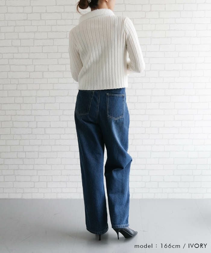 フェザーヤーン襟付きダブルジップリブニットカーディガン 春 秋 冬 | アクアガレージ aquagarage