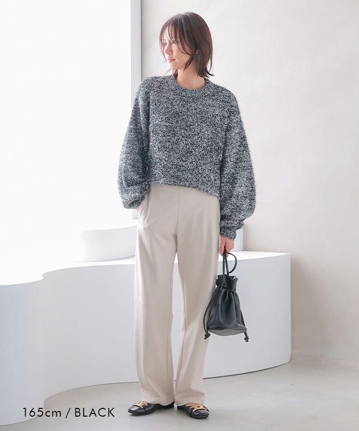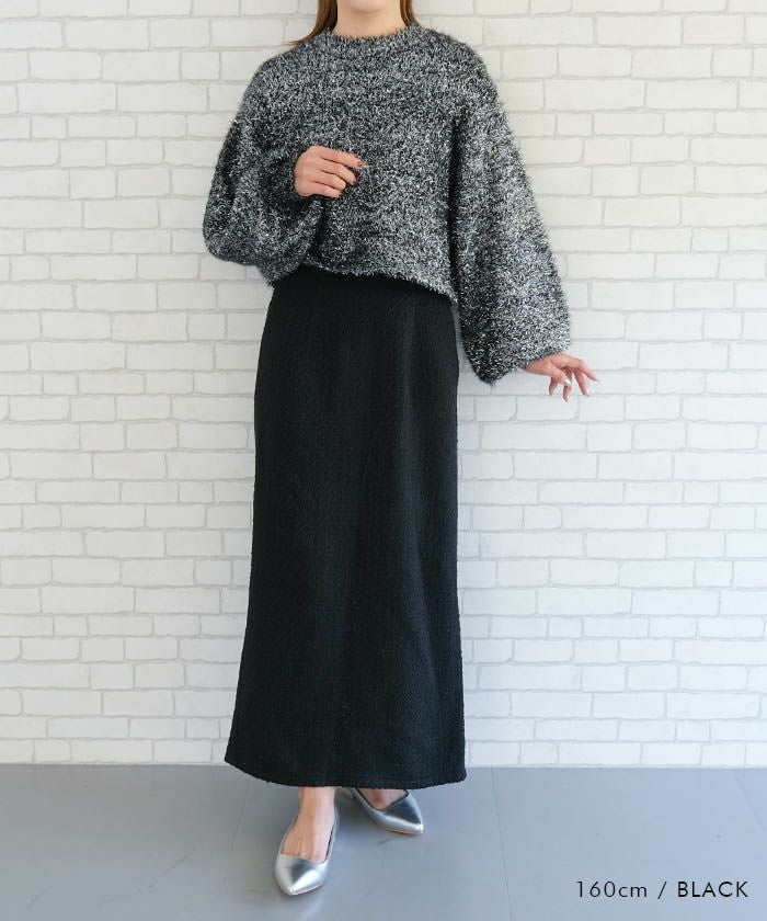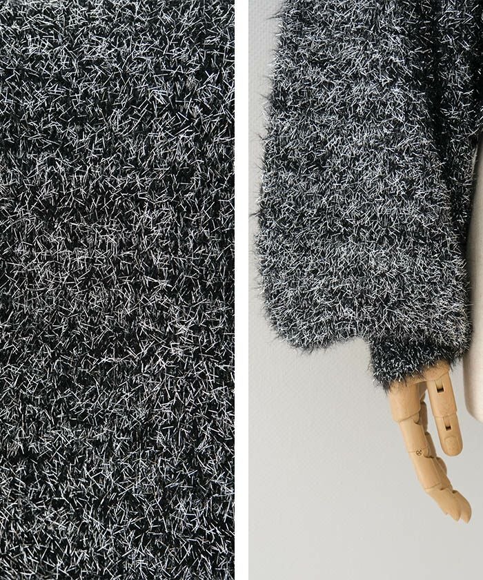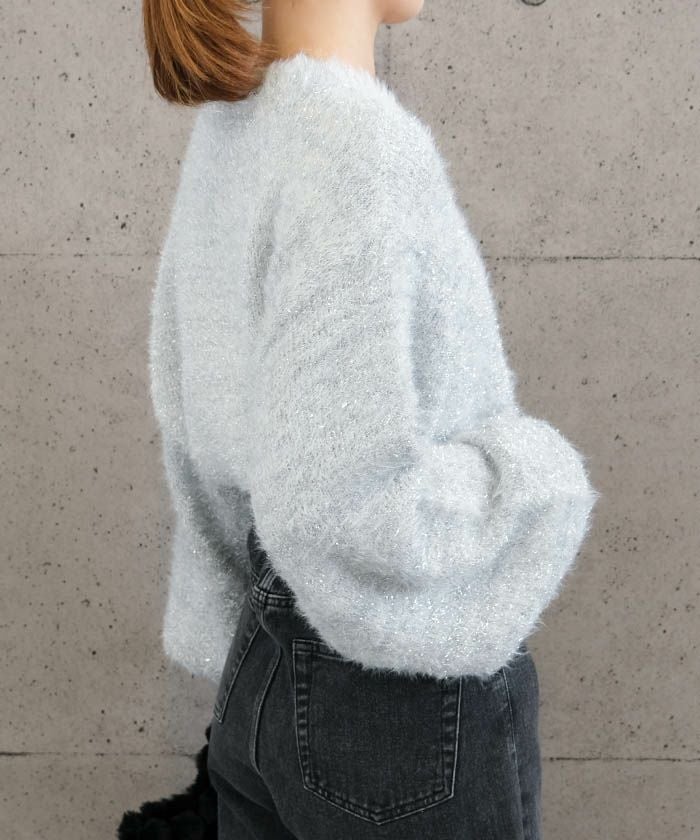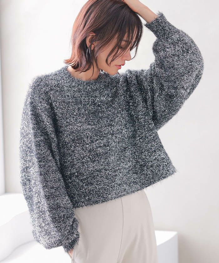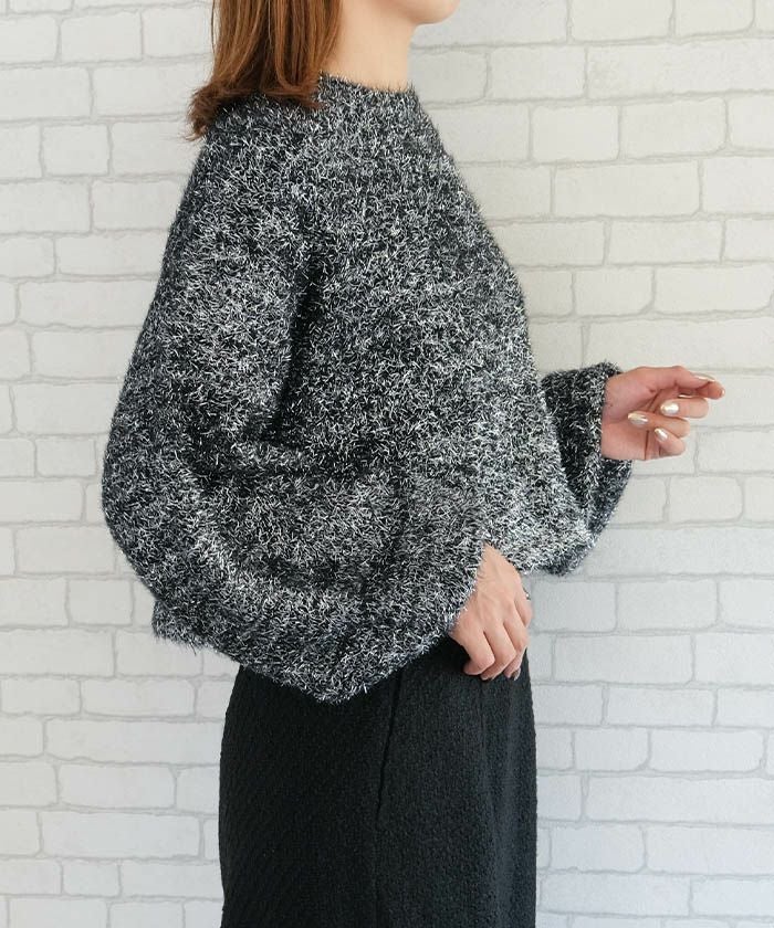 • ラメフェザーハイネックショート丈ニットトップス 春 秋 冬 | アクアガレージ aquagarage