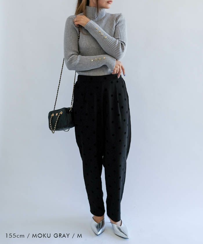 ハイネック袖ハートボタンリブニットトップス 春 秋 冬 M レディース ≪ゆうメール便配送30・代引不可≫ | | アクアガレージ aquagarage