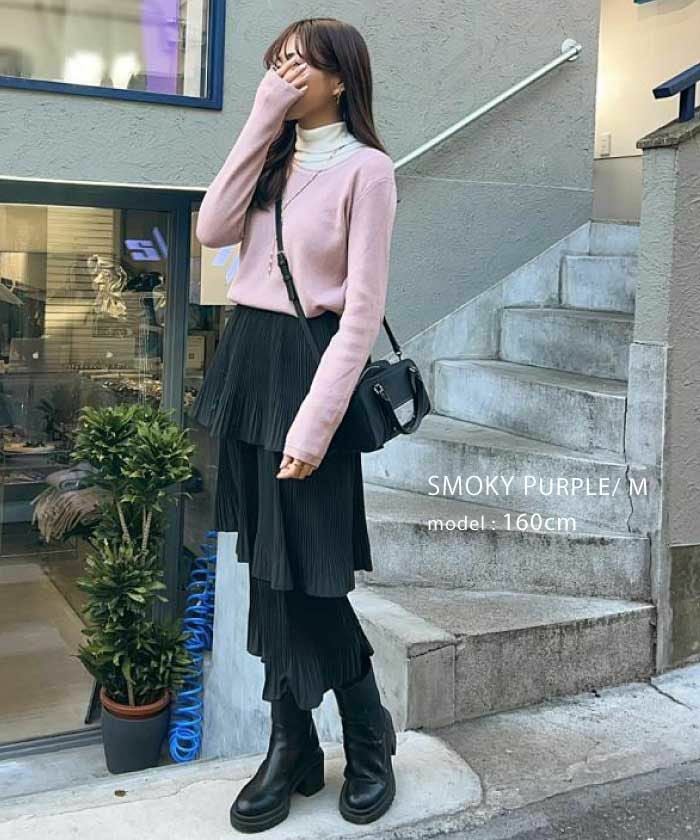 いつもベーシックな色のものを購入していたのですが、少し明るい色のニットも欲しくなり、今回はピンクを購入しました。イエベ春の方にオススメなお色だと思います。