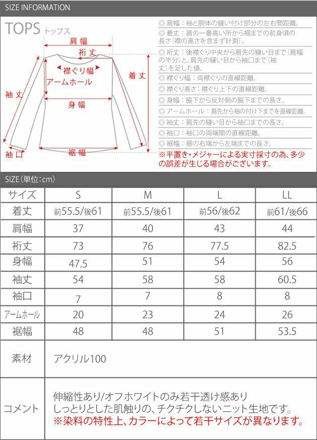 スリットデザインゆるニットトップス 長袖 S M L LL ≪ゆうメール便配送30・代引不可≫ | アクアガレージ aquagarage
