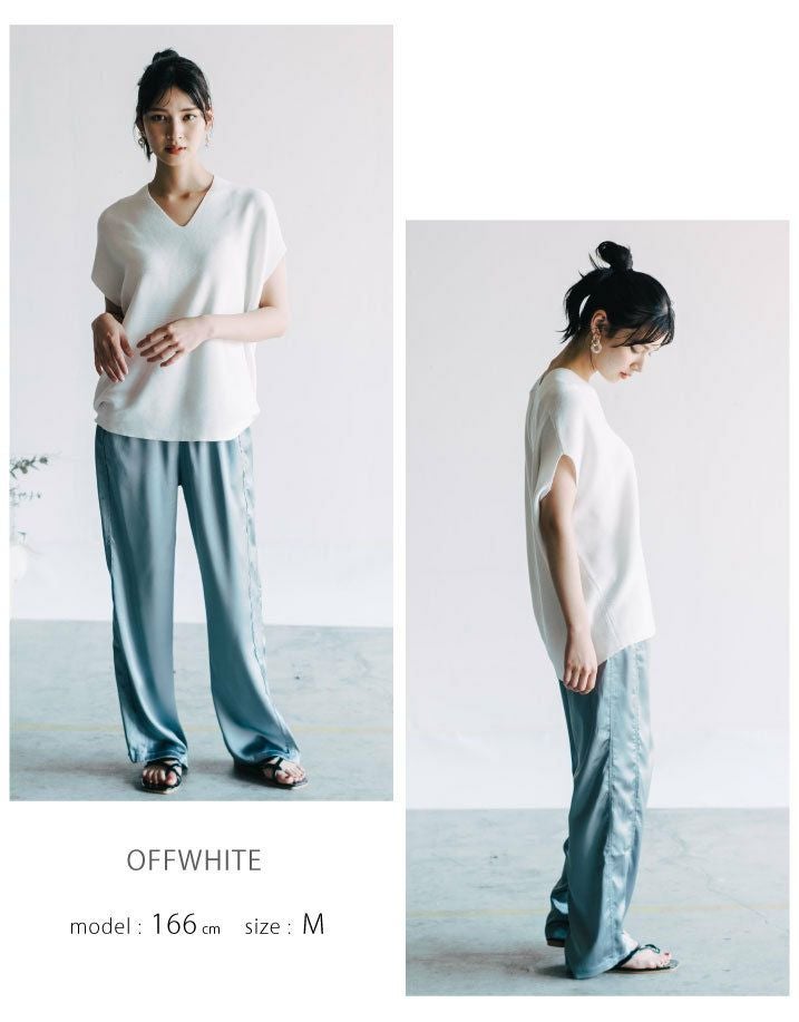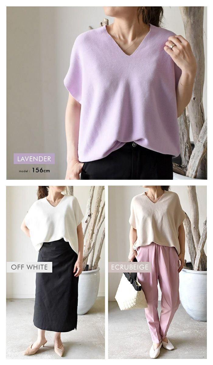 シルエットが女性らしさを引き出すコクーンサマーニットトップス。