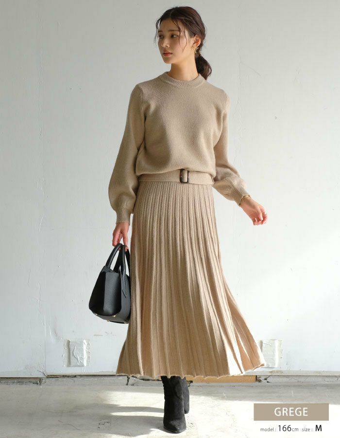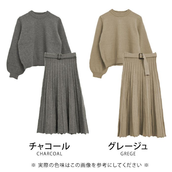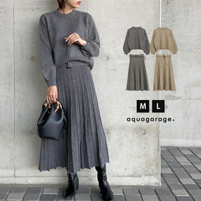 送料無料 ベルト付きニットセットアップ レディース 秋 冬 長袖 3点セット | アクアガレージ aquagarage