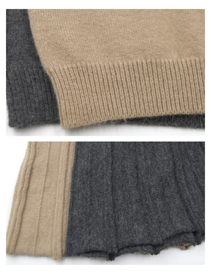 生地がしっかりしていて、暖かいです。 チクチクする感じもあまりありません。 骨格ストレートで着膨れしやすいのですが,このセーターは肩幅もジャストサイズで、着膨れしません。これ一つで綺麗なコーディネートができるので、とても気に入りました。スカートのプリーツもかわいいです。