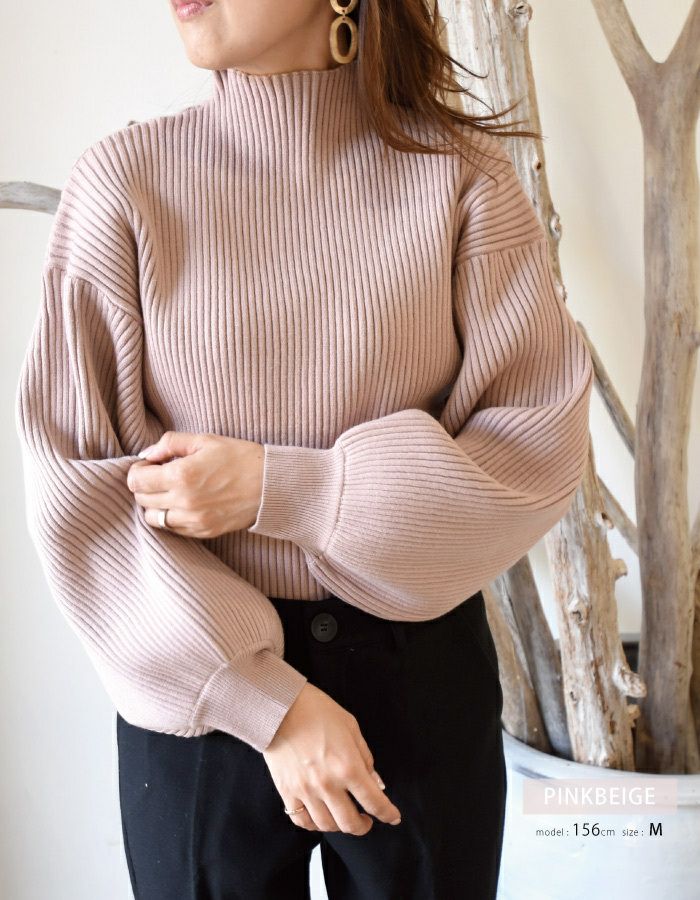 送料無料 バルーン袖ニットトップス レディース 秋 冬 長袖 M L | アクアガレージ aquagarage
