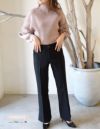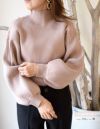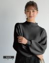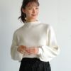 ふんわり柔らかい長袖ニットトップス。ぽわんとしたボリューム袖とほっそりとした華奢見せ袖口のシルエットで女性らしさを演出。
