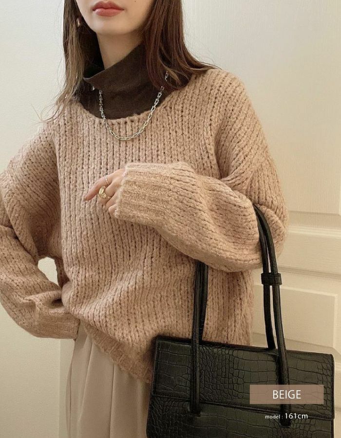 • ゆとりを持たせたシルエットと程よい着丈感のモヘアタッチニット。