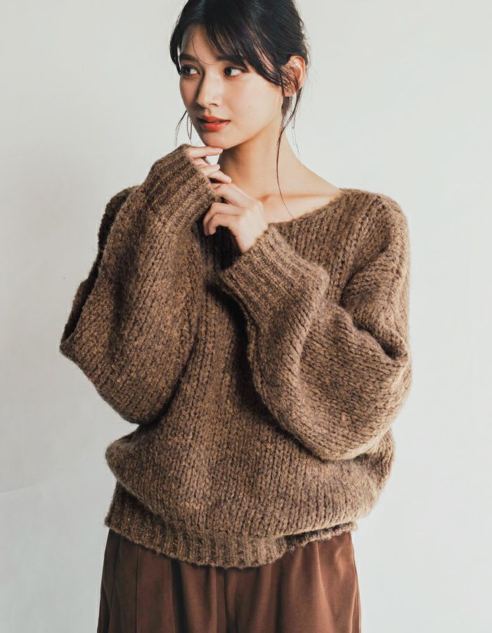 モヘアのようなふわふわの質感でチクチクせず快適な着心地。リラックスムードある着心地の良いトップス。