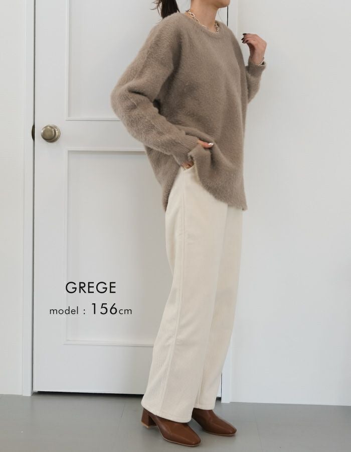 • ずっと着ていたくなる肌触りが魅力のシャギーニットトップス。 やわらかく、チクチクしないニット素材で、保湿性・着心地◎ クルーネックのデザインが顔周りをすっきりと見せてくれます。 前後差・スリット入りなのでコーデのバランスも取りやすいです♪