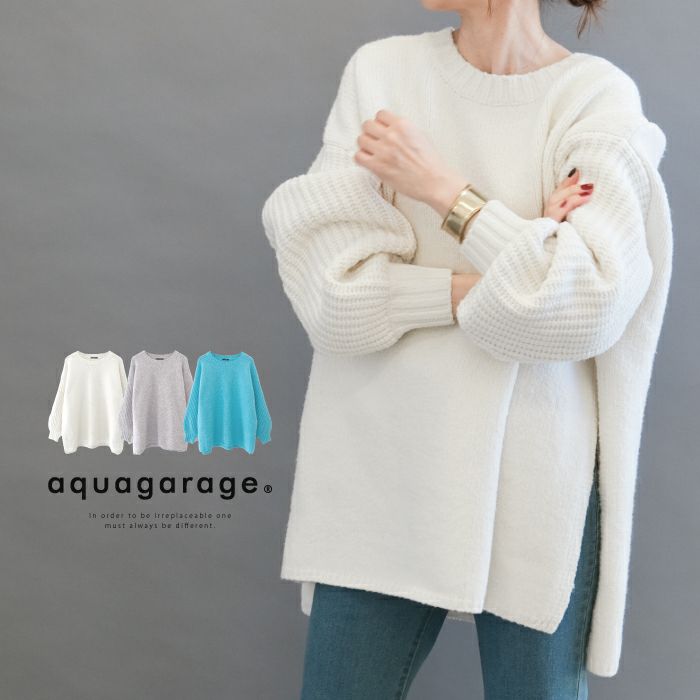 送料無料 サイドスリットボリューム袖ニット レディース 秋 冬 | アクアガレージ aquagarage