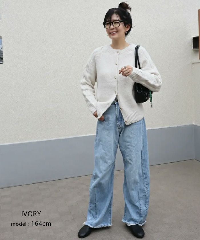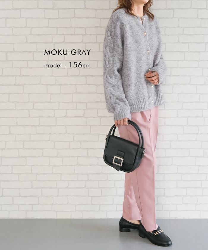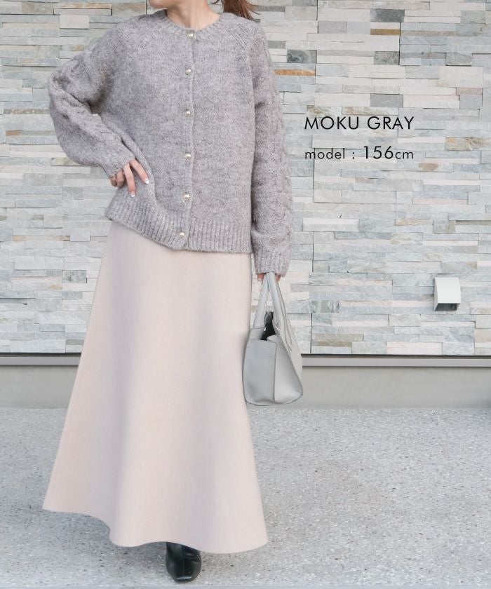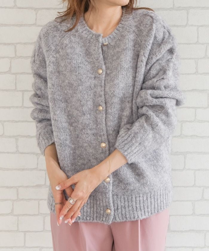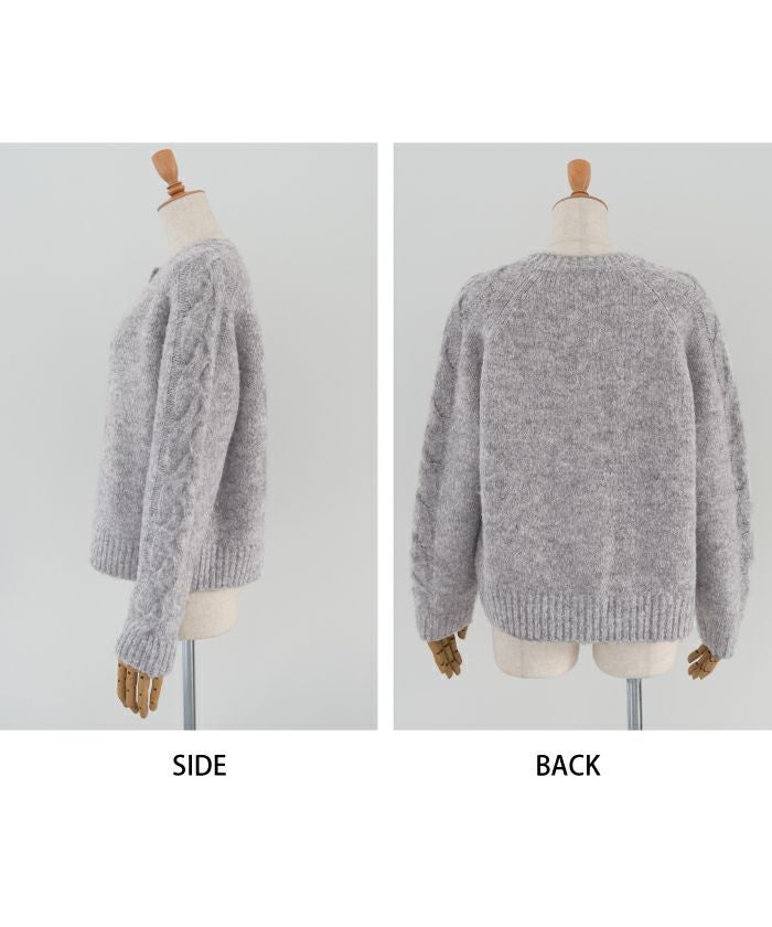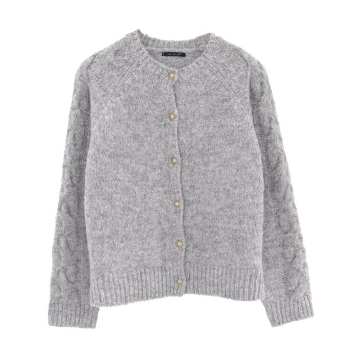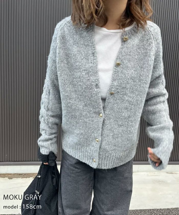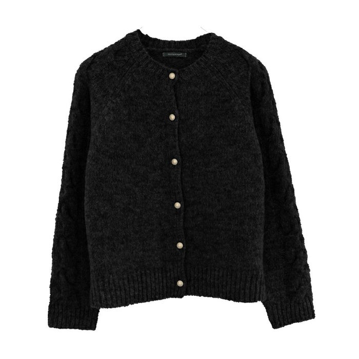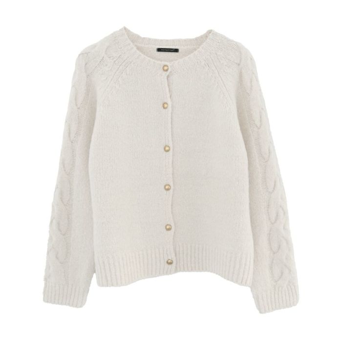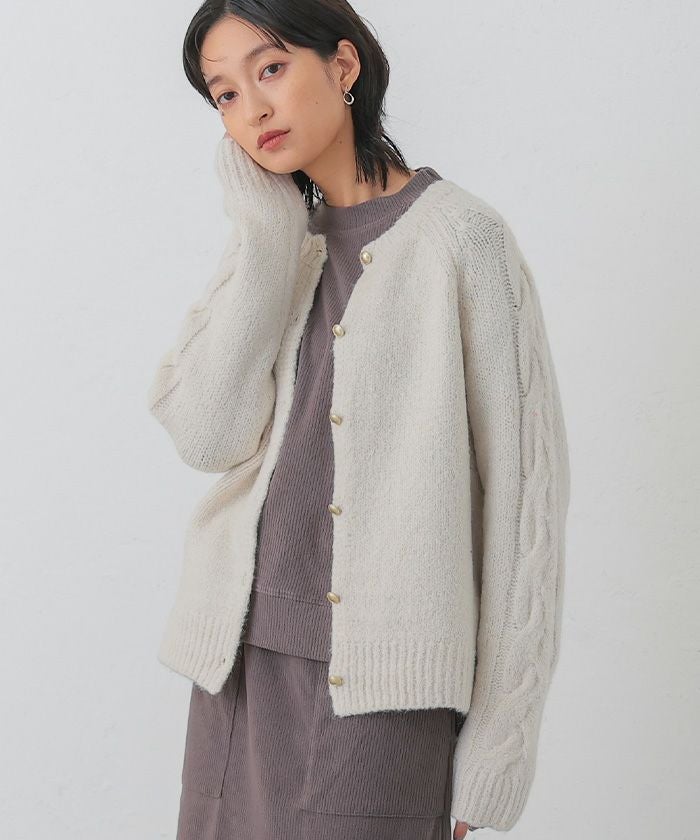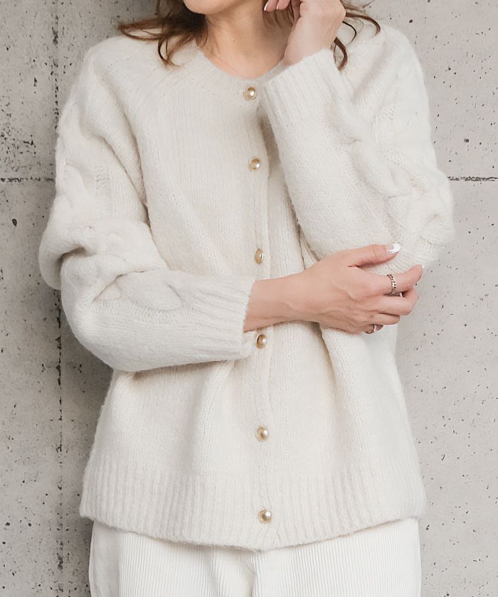 • ゴールドボタンがポイントのケーブル編みニットカーディガン